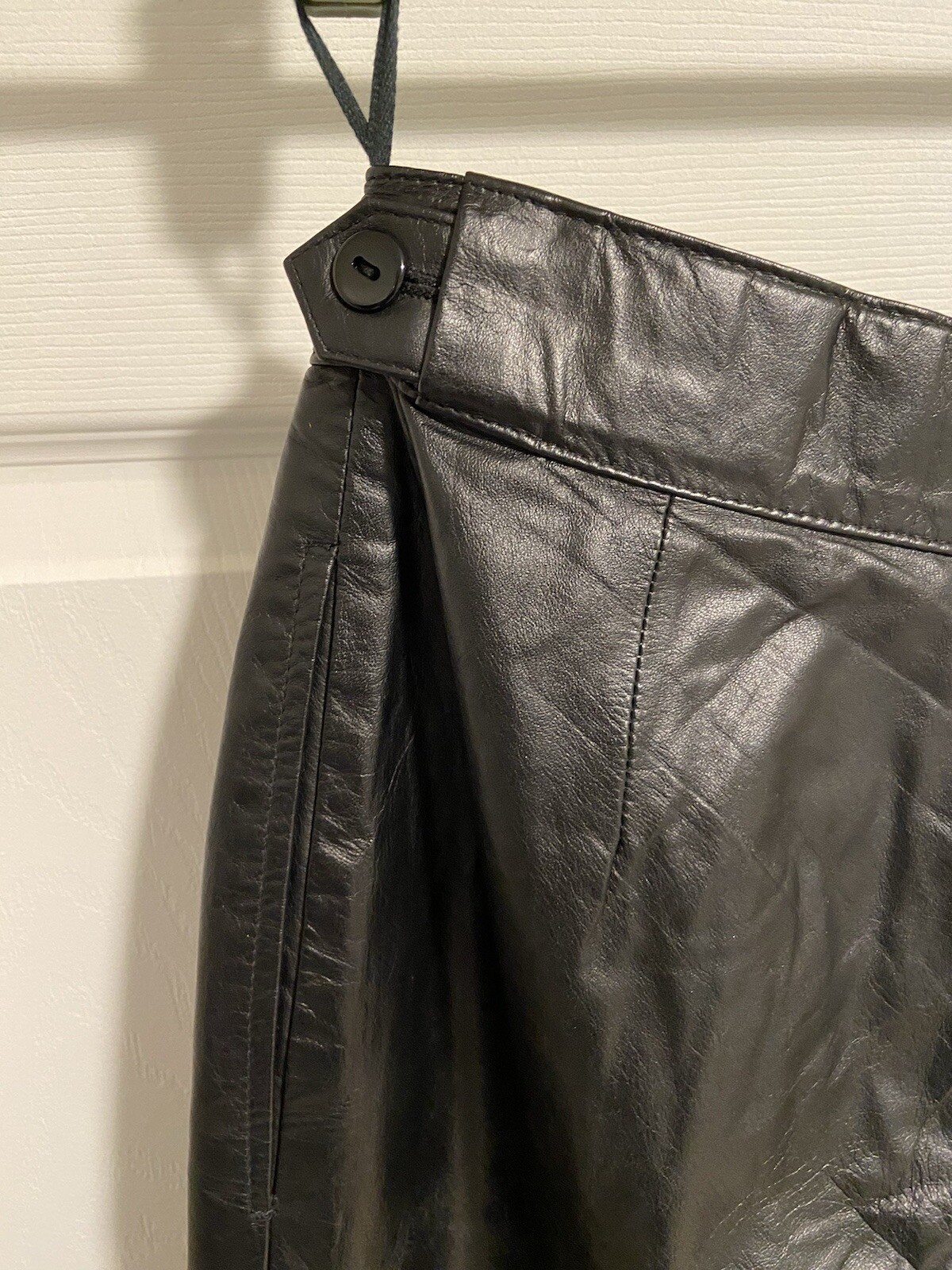 как выглядит West Bay Vintage 80s Super High Rise Black Leather Pants Pleated Lined 6/8 фото
