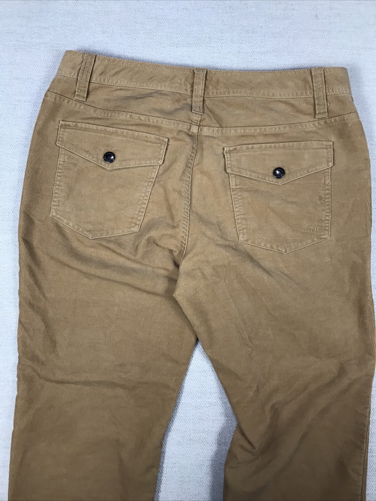как выглядит Tommy Hilfiger Womens Corduroy Straight Leg Pants 10 Embossed Snaps Logo Retro фото