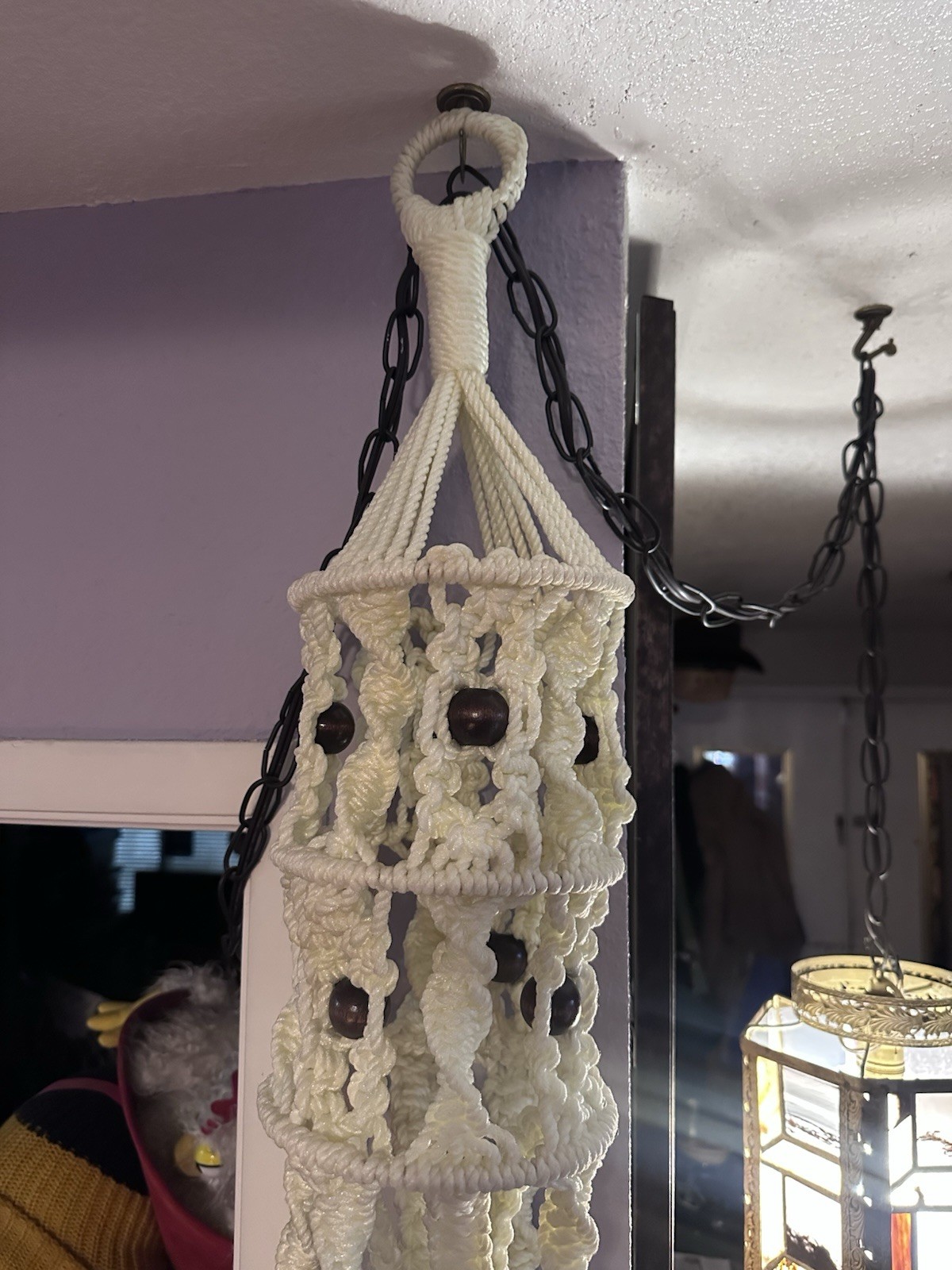 как выглядит Vintage 1970s Massive 8ft Macrame Boho Hanging Plant Hanger Wood Beads Exc Cond. фото
