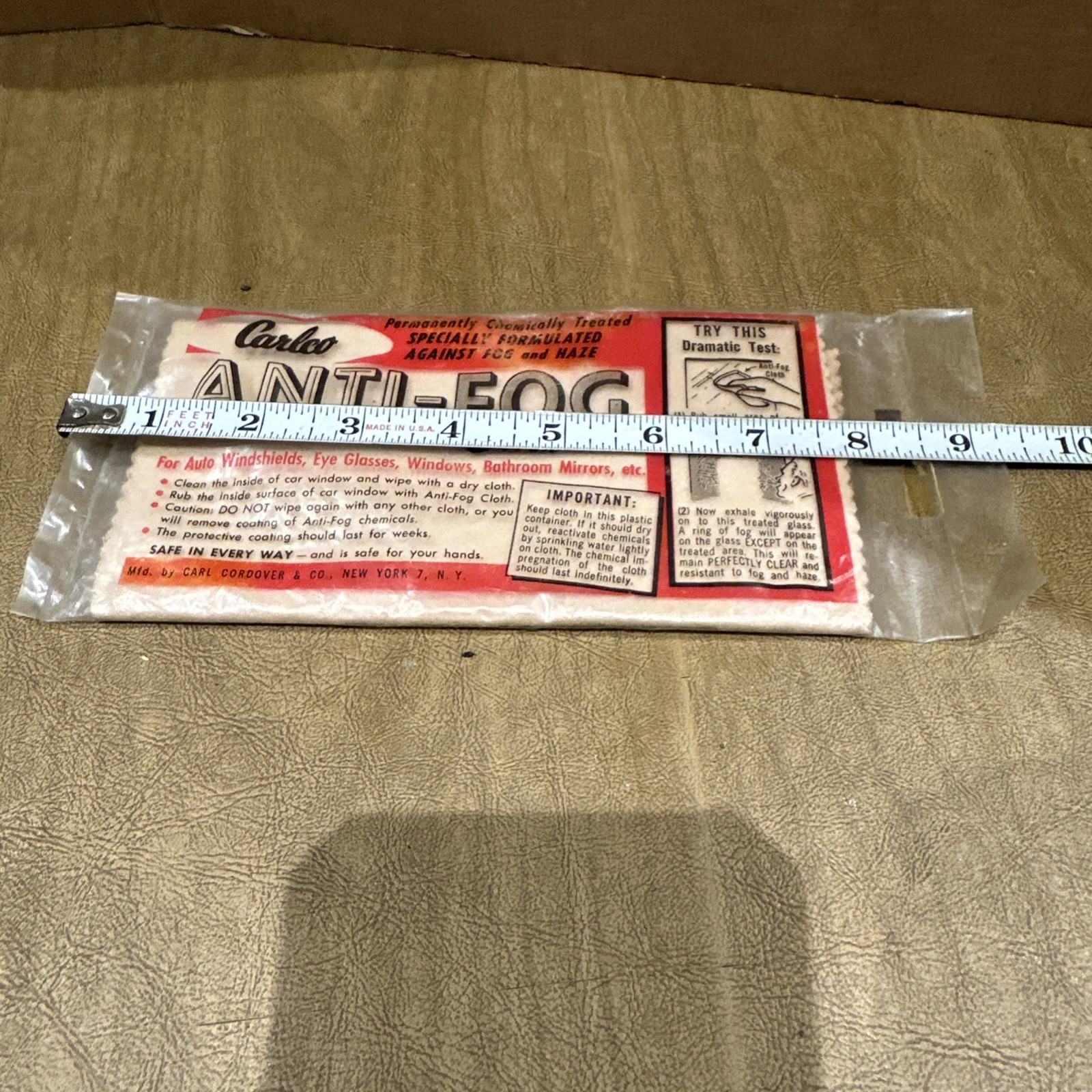 NOS Vintage Carlco Anti-Fog Cloth Manufactured By Carl Cordover Co F22