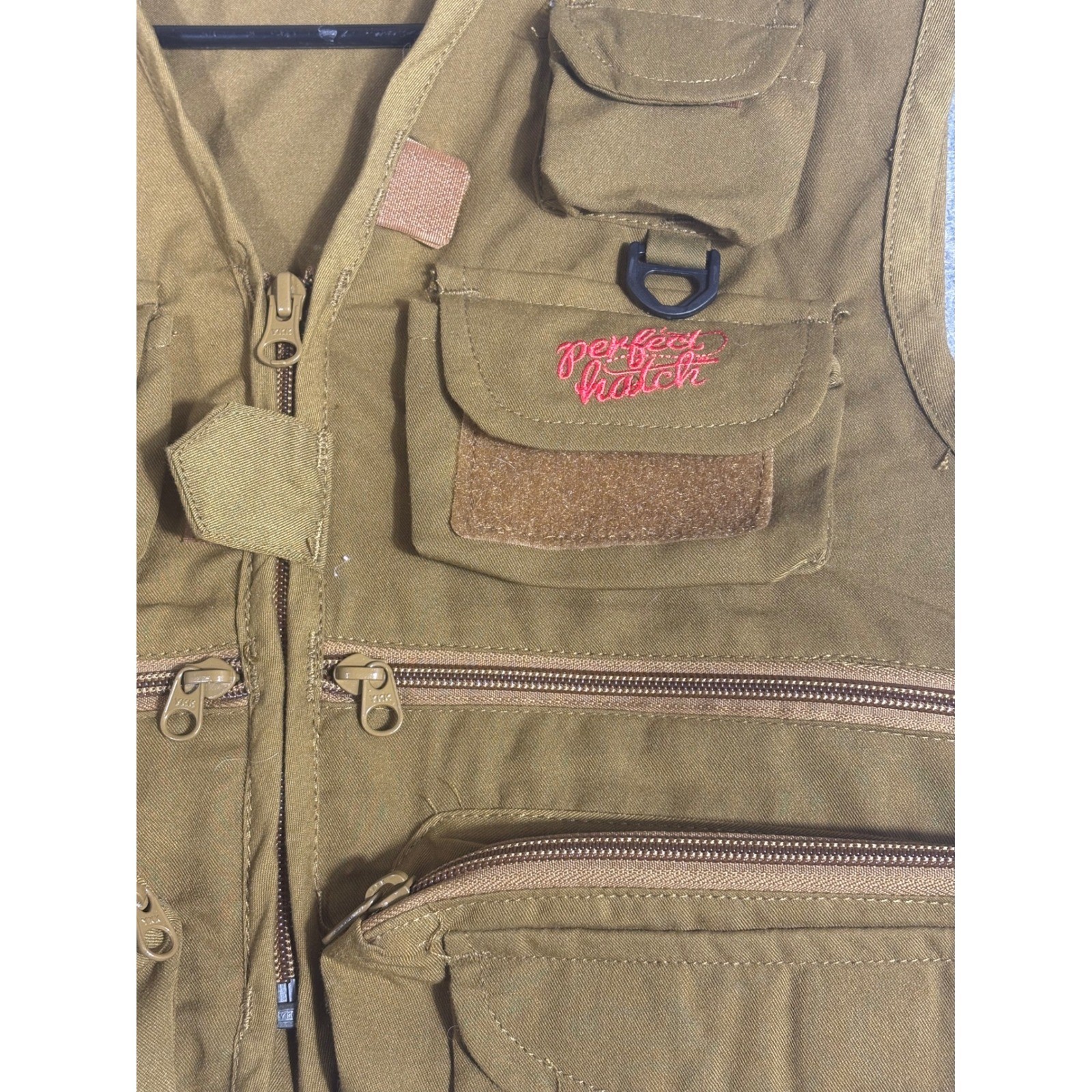 Perfect Hatch Kids Utility Vest Khaki Pockets D-rings Zipper Size L