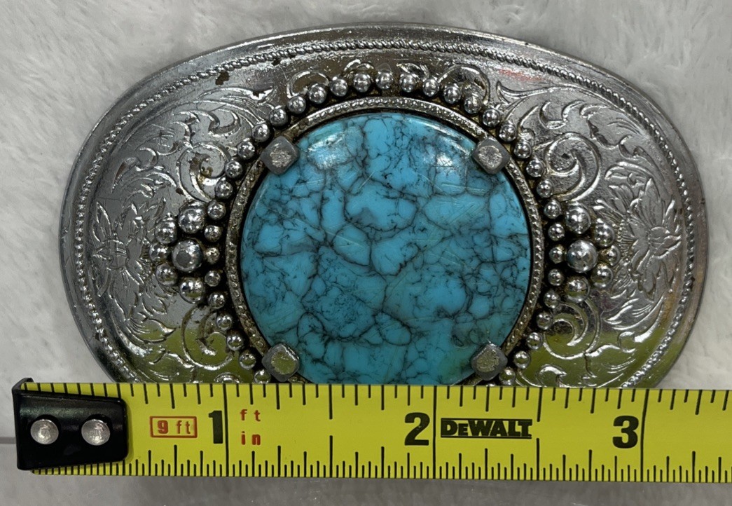 как выглядит Vintage Western Belt Buckle Silver Tone with Turquoise Blue Stone Floral фото