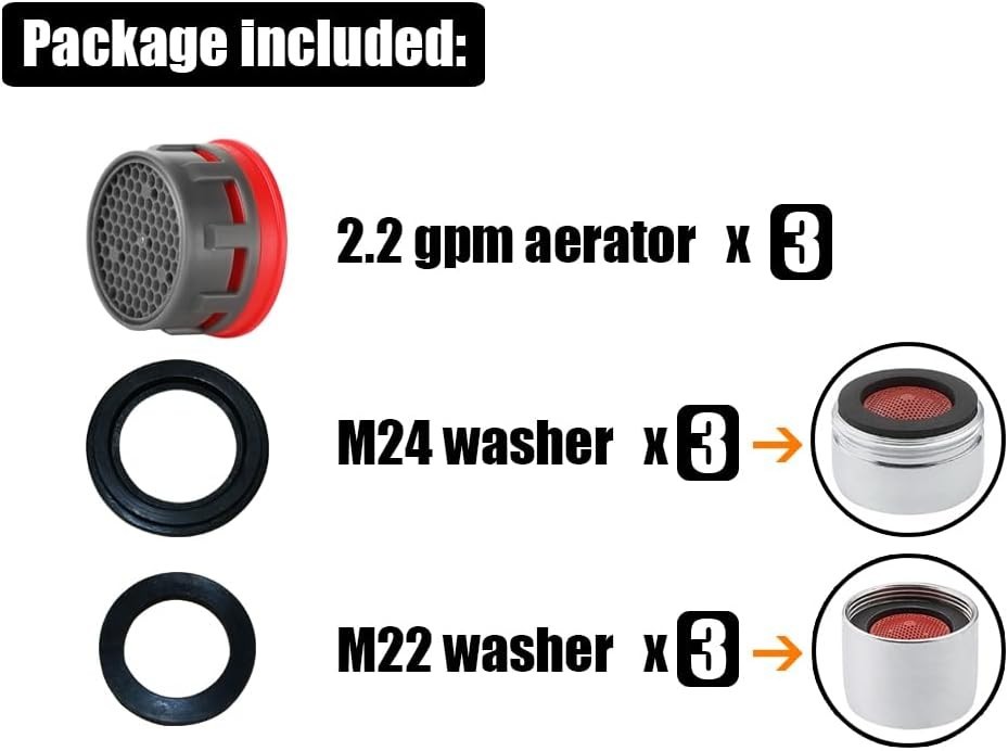 3-Pack Faucet Aerator Inserts - 2.2 GPM Flow Restrictors for Bathroom Kitchen