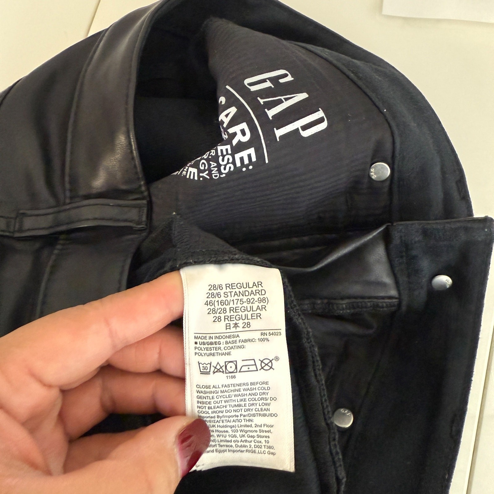 как выглядит GAP Womens High Rise Vintage Vegan Leather Slim Pants Black - 28 6 фото