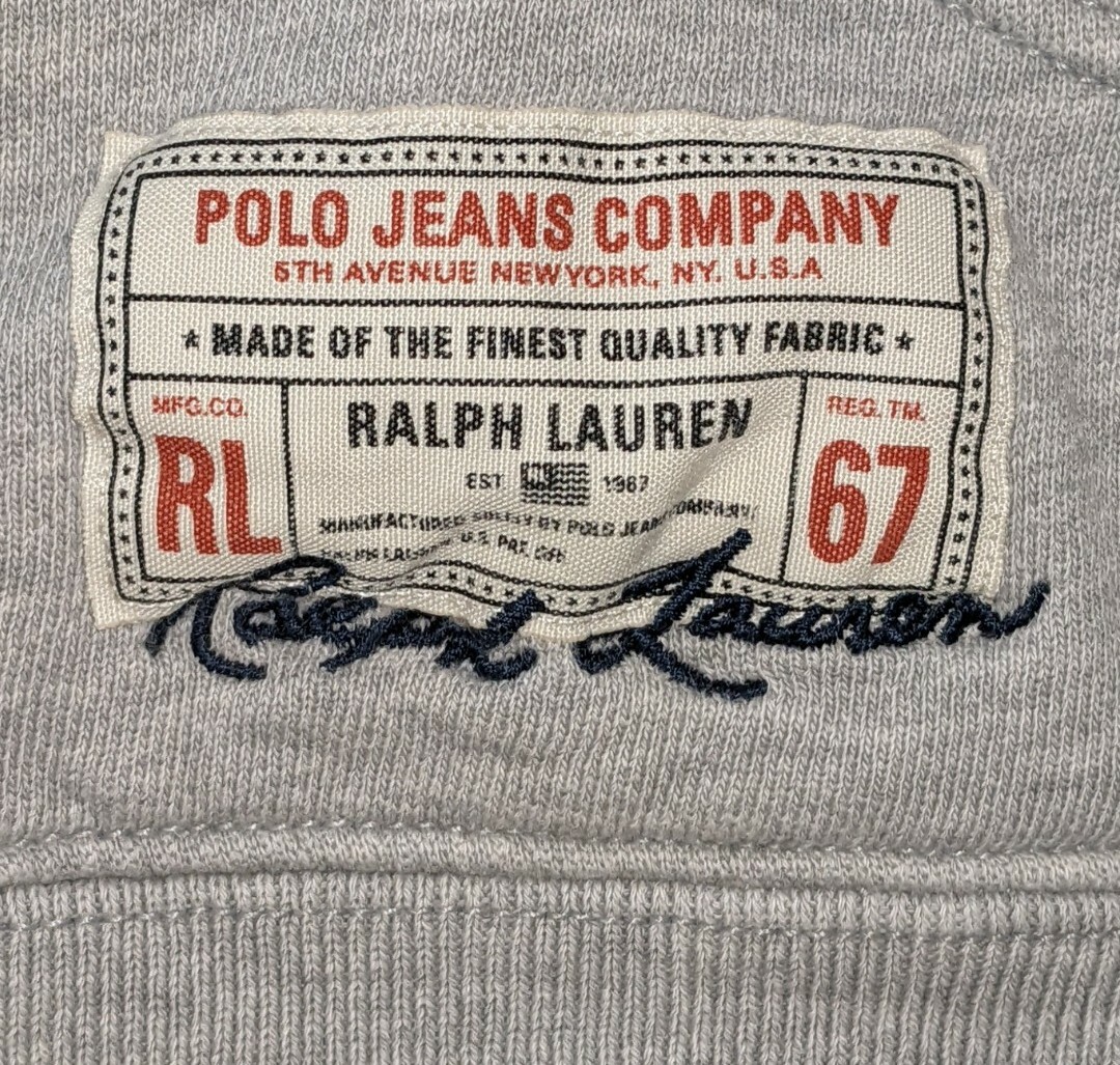 как выглядит VTG Ralph Lauren Polo Jeans Company Gray Midweight Applique Hoodie - S Read фото
