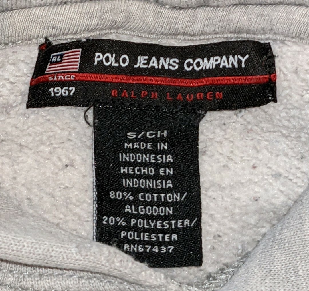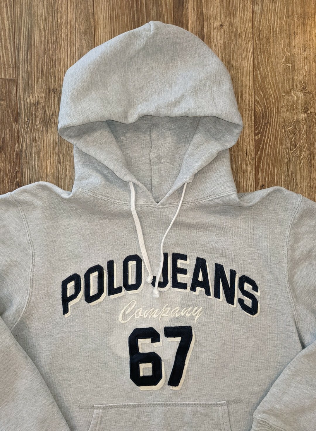 VTG Ralph Lauren Polo Jeans Company Gray Midweight Applique Hoodie - S Read