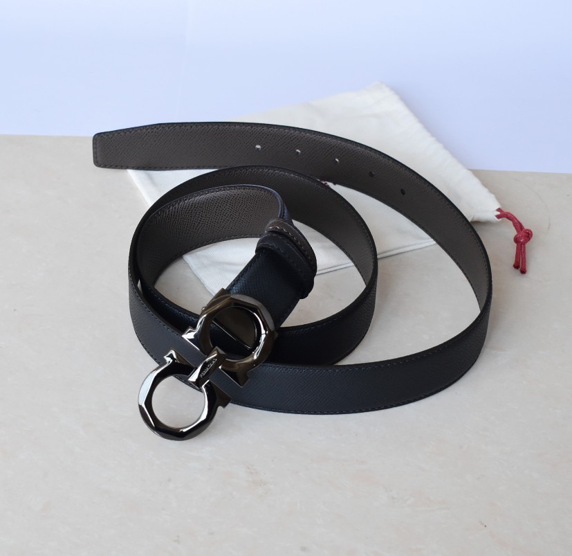 Ferragamo Reversible / adjustable Gancini Men s Belt Black finish buckle 120cm