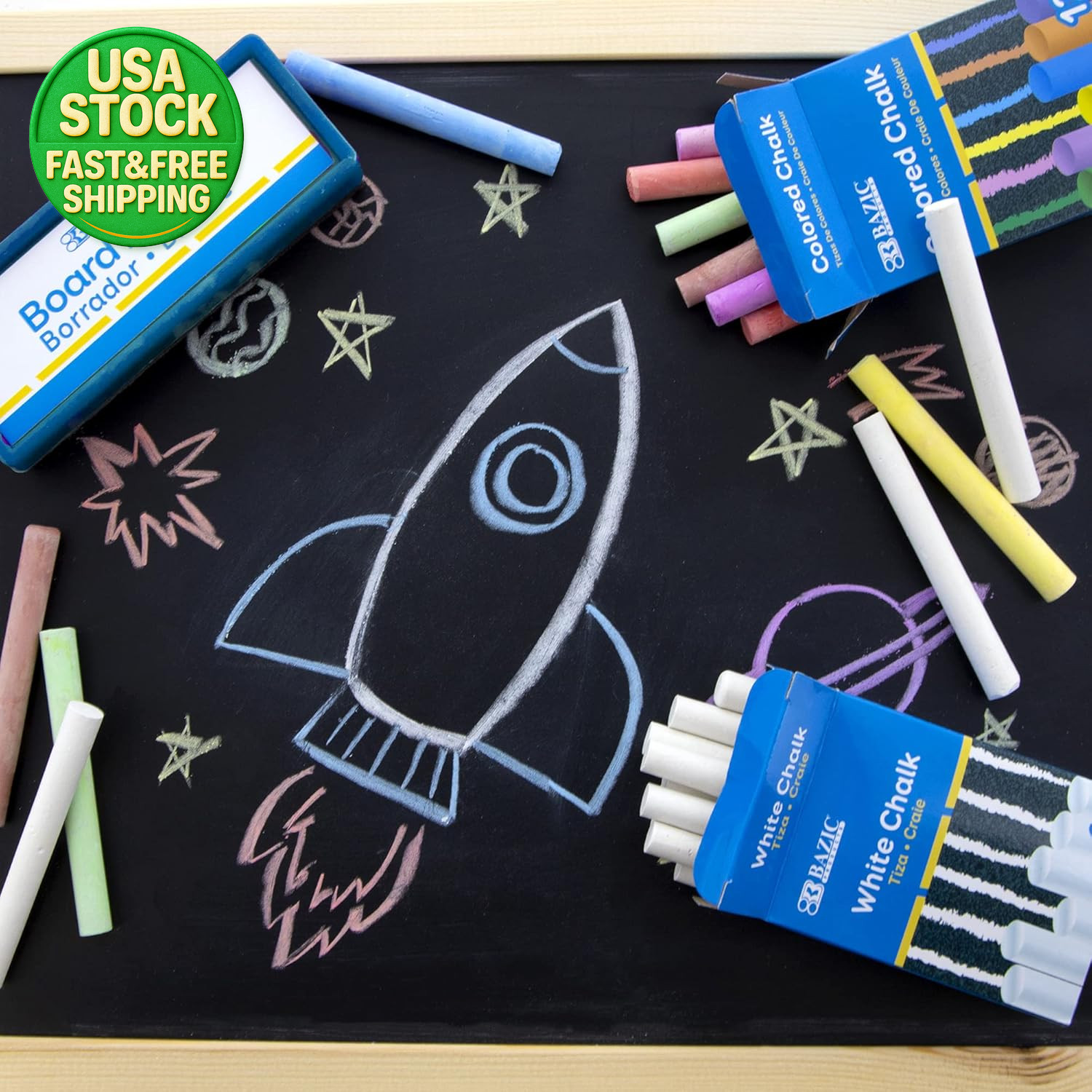 24 Pcs Colored and White Chalk with Chalkboard Eraser Non Toxic Classroom