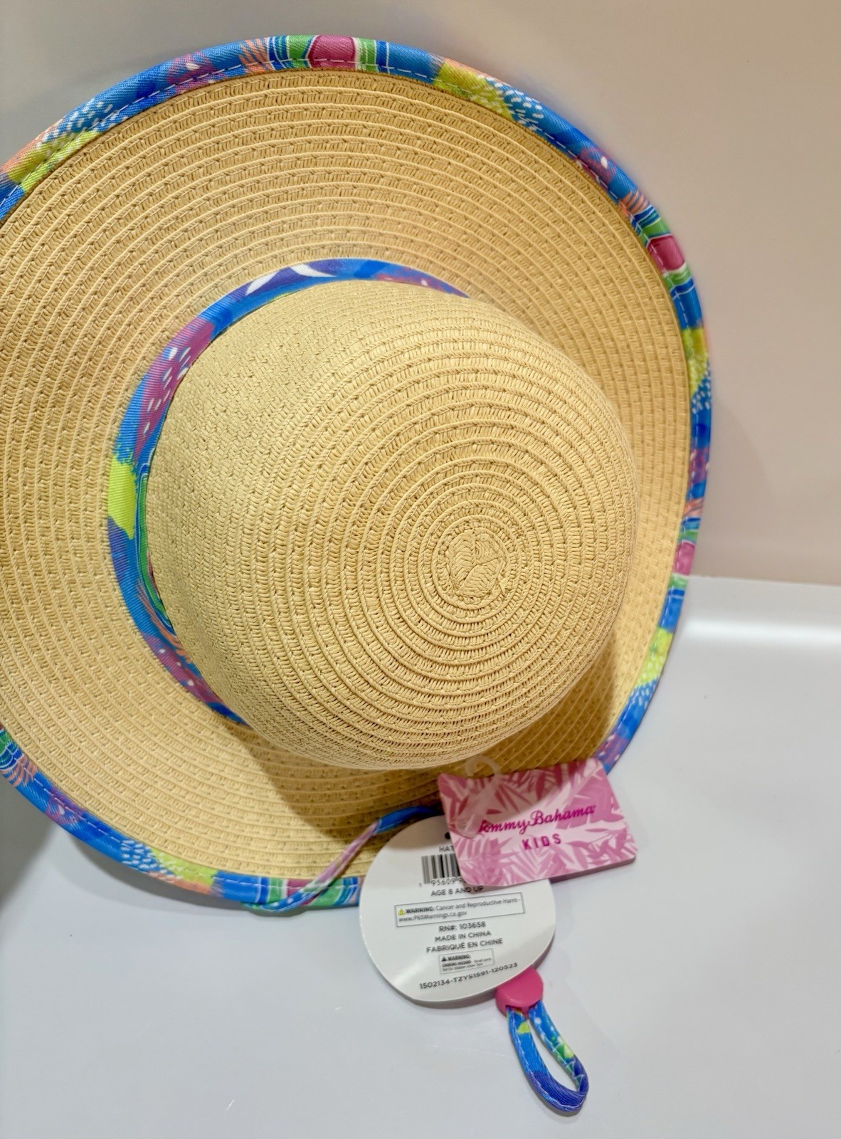 как выглядит Tommy Bahama Girls Light Straw Hat for Sun Beach Colorful Trim, Chin Strap NWT фото
