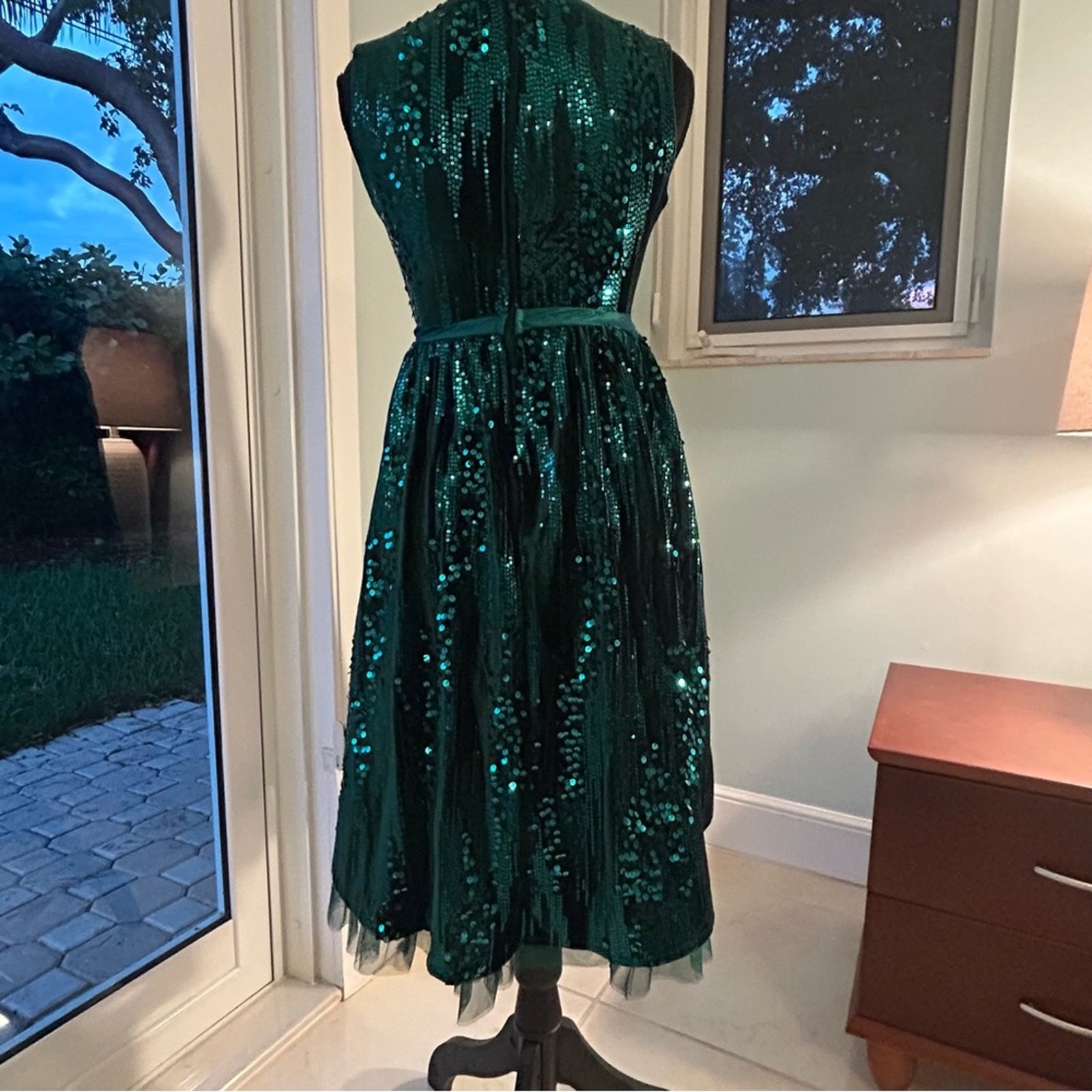 Rare Editions Green Velvet Sequin Christmas Dress