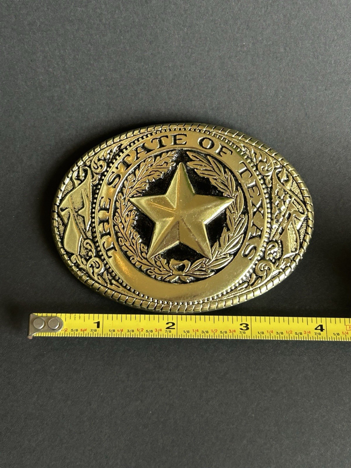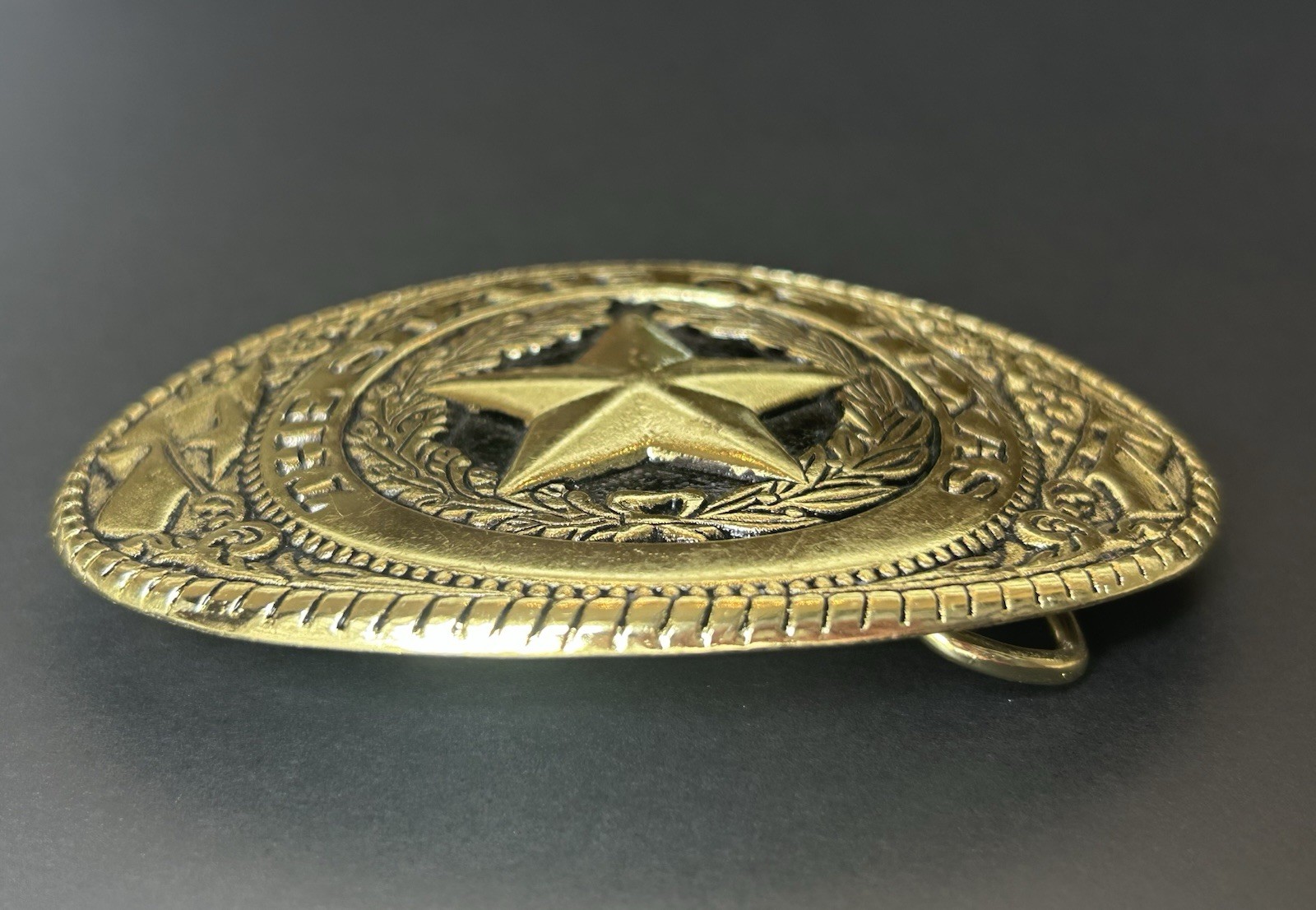 как выглядит Vintage State Of Texas Star Gold Tone Belt Buckle фото