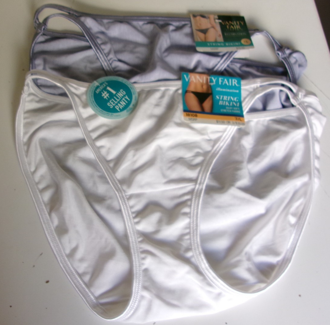2 Vanity Fair Illumination String Bikini Style 18108 Size 7 white and blue