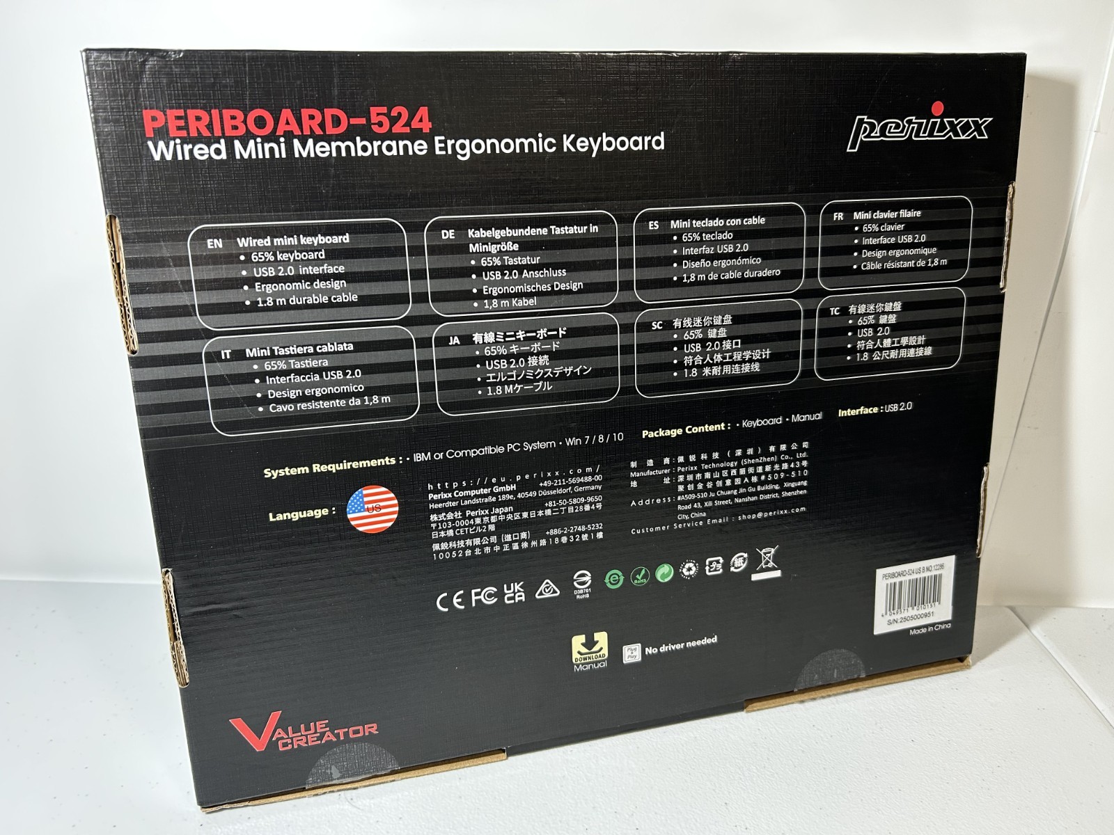 Perixx Periboard-524 USB Wired Mini Membrane Ergonomic Split PC Keyboard 12286