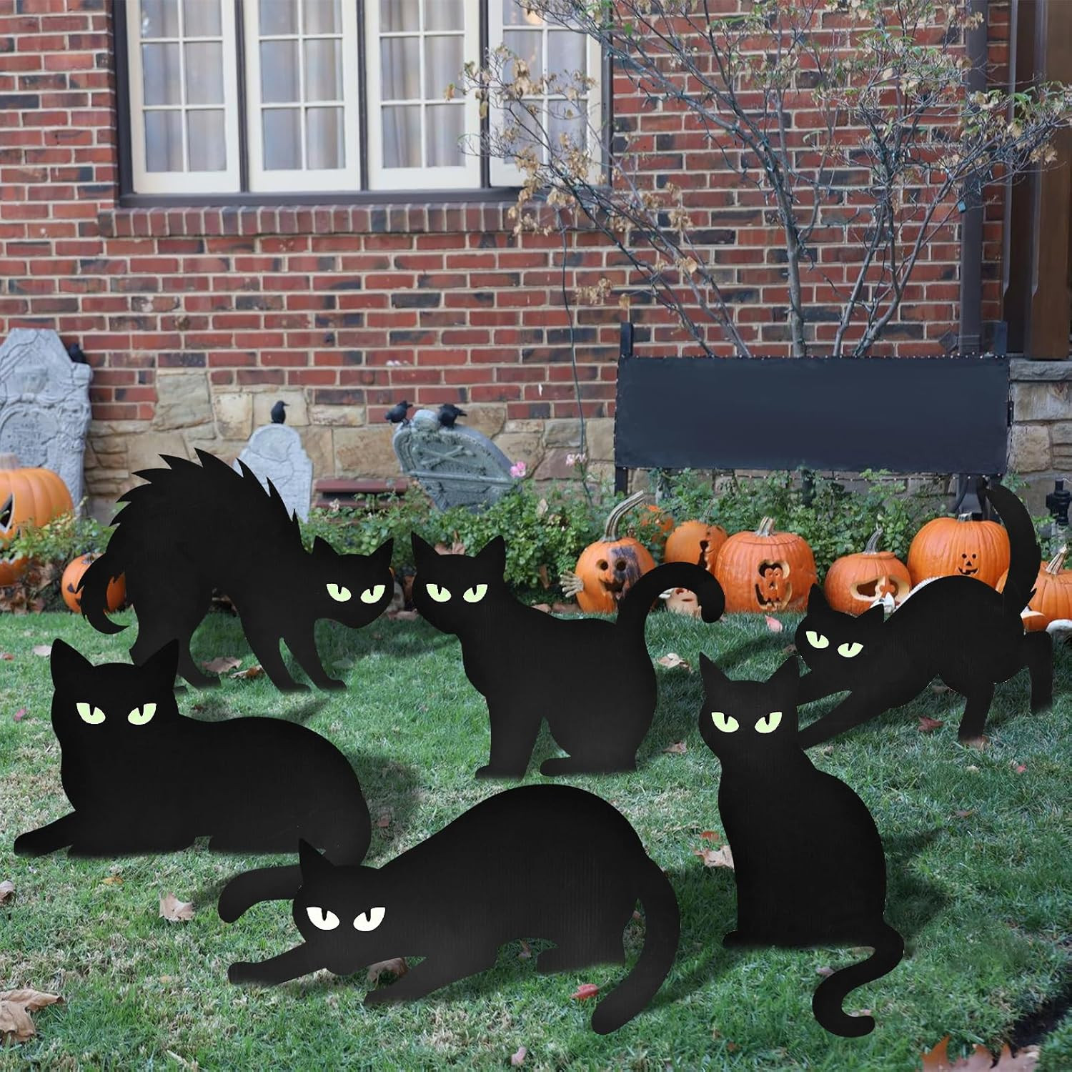 6 Pack Halloween Black Cat Yard Signs with Glowing Eye Stickers Large Scary Ca