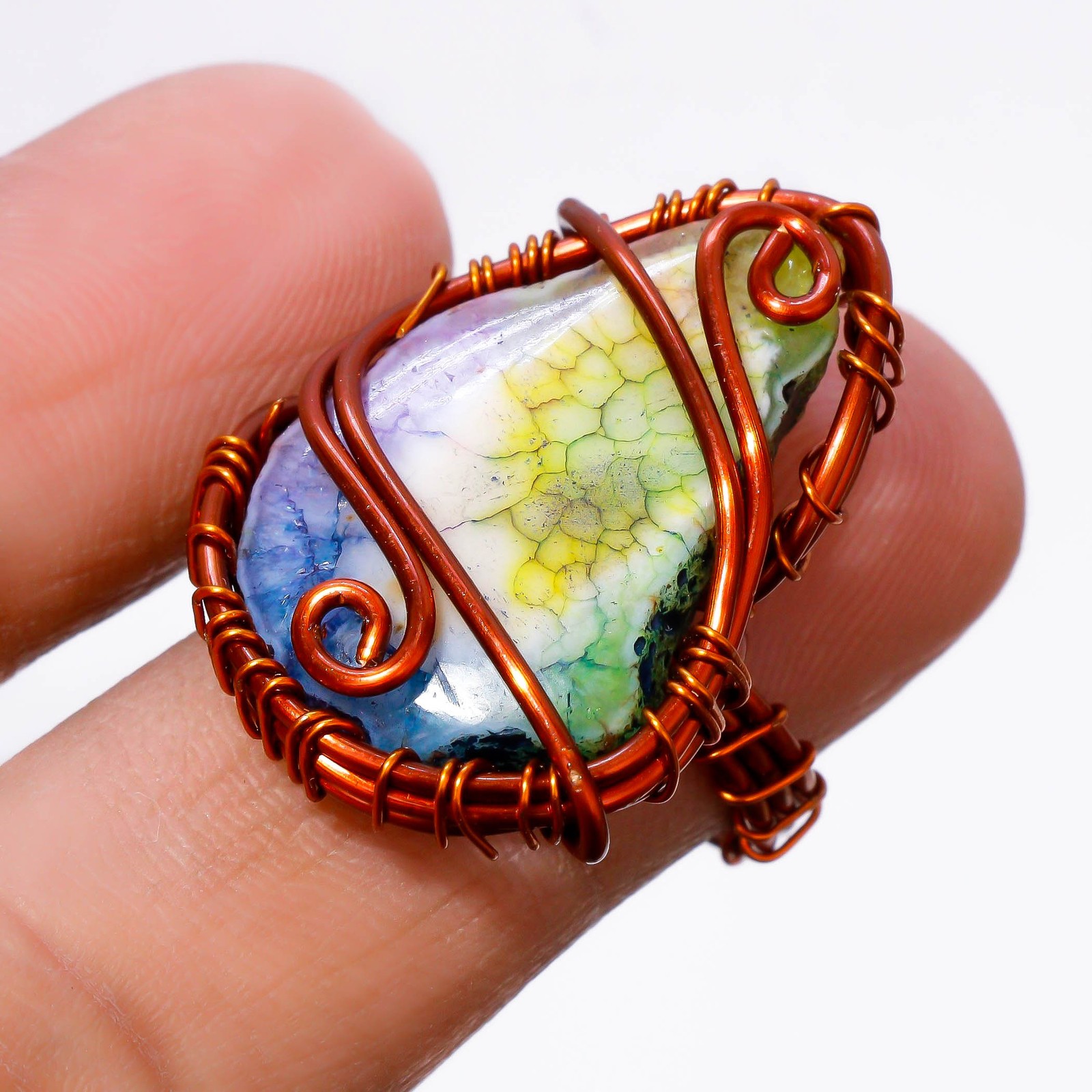 как выглядит Multi Solar Quartz Gemstone Handmade Wire Wrap Copper Jewelry Ring 6" PG 655 фото