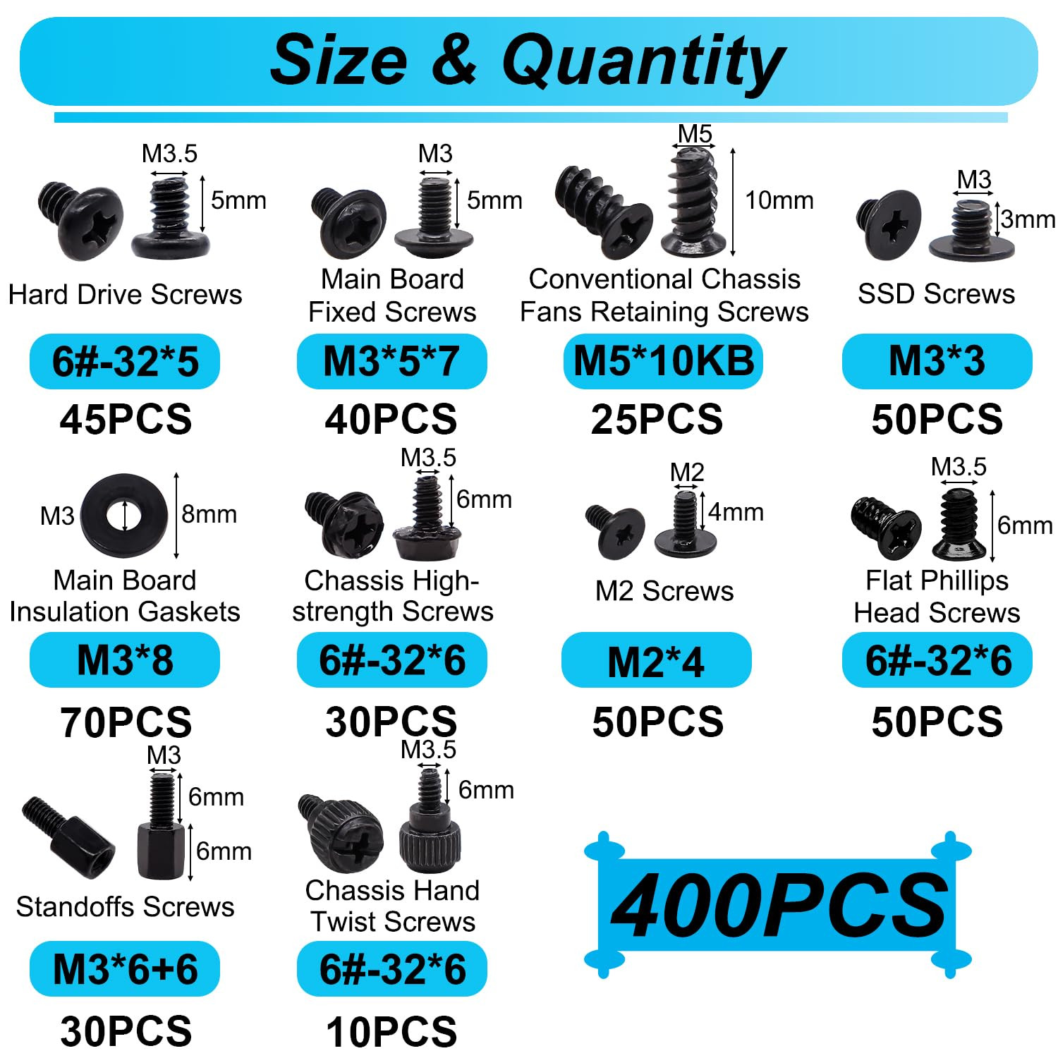 • 400Pcs Computer Screws Assortment Kit, Motherboard Standoffs Screws PC Screws...