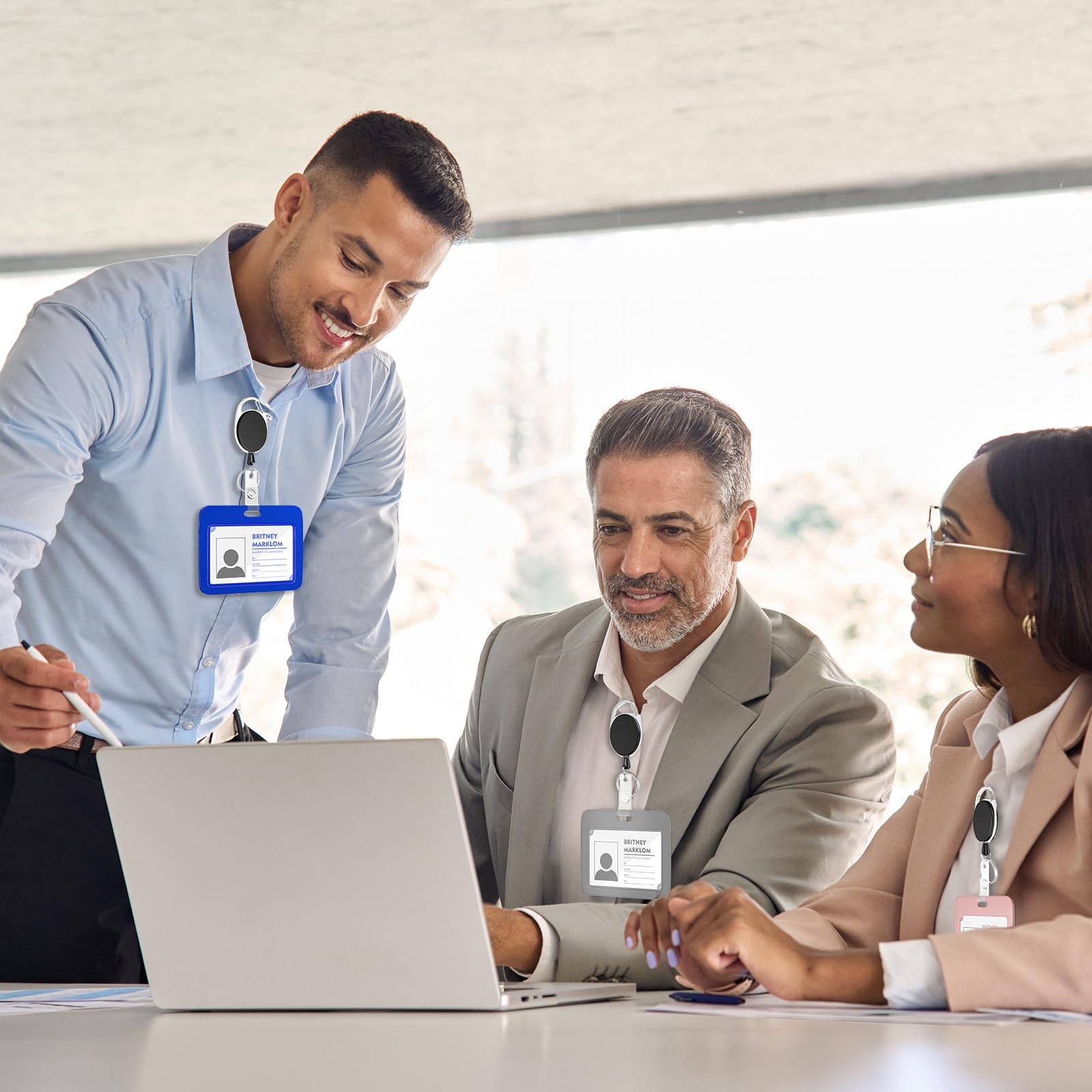 Horizontal Sliding ID Badge Holder w/ Clear Window Black ID Card Protector Pouch