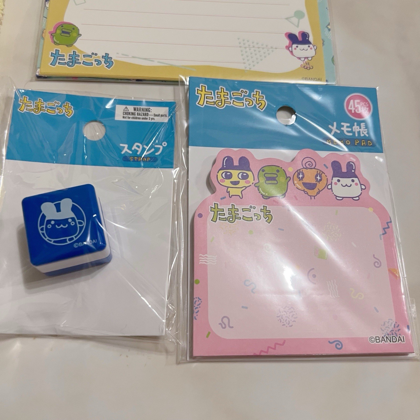 как выглядит 2025 Bandai Tamagotchi Connection Lot of 4- Towel, Letter Set, Memo Pad, Stamp фото