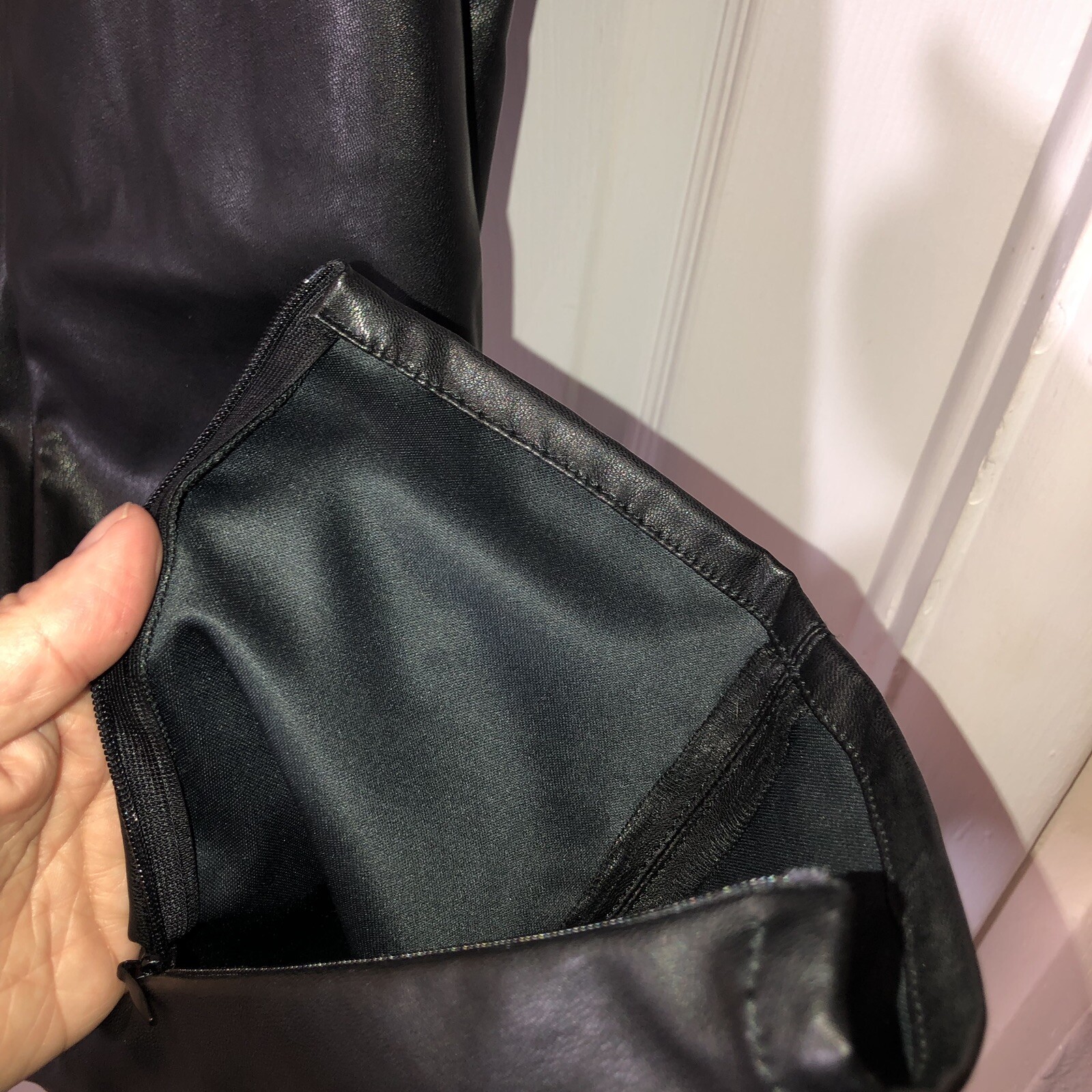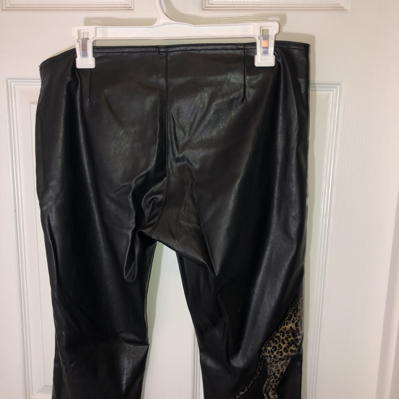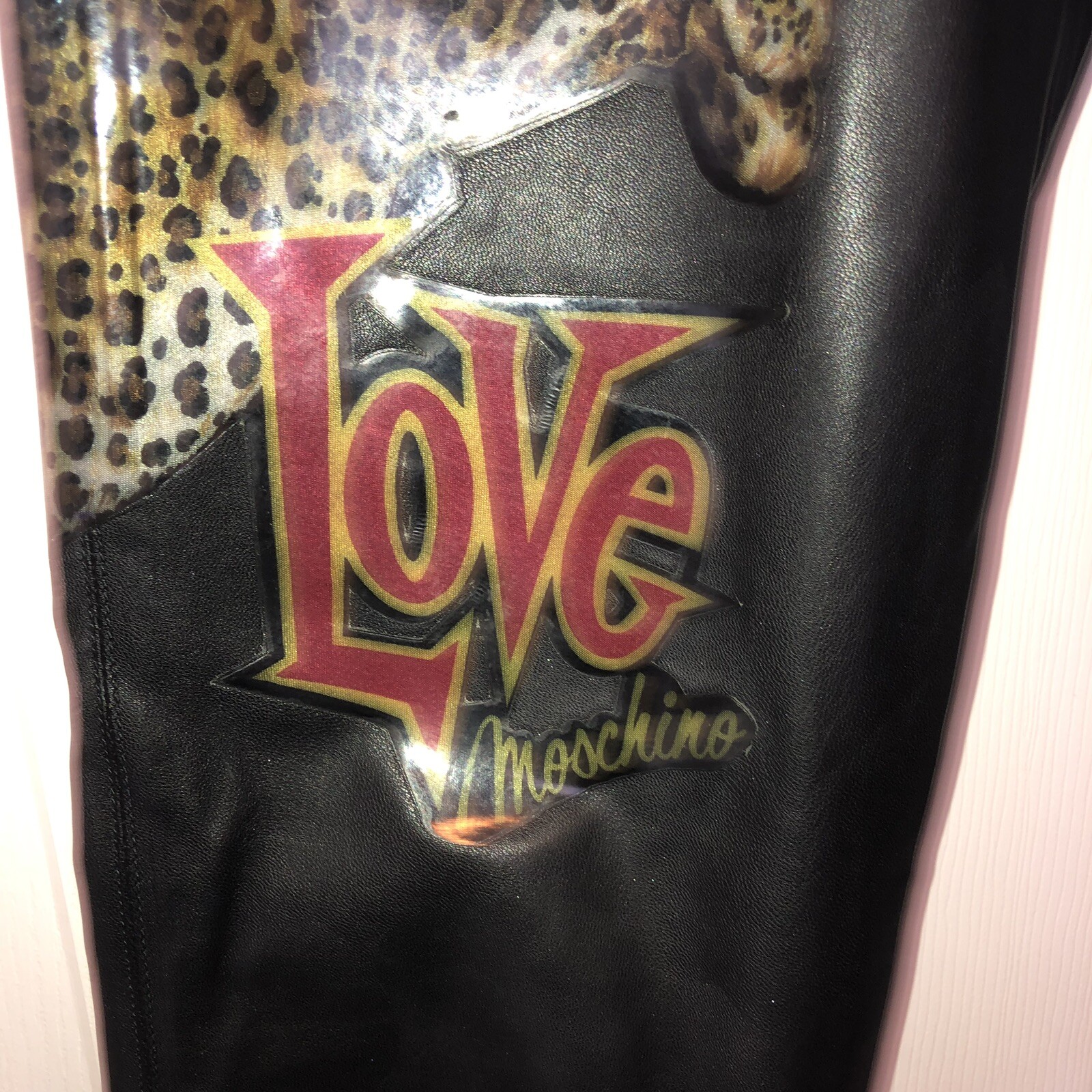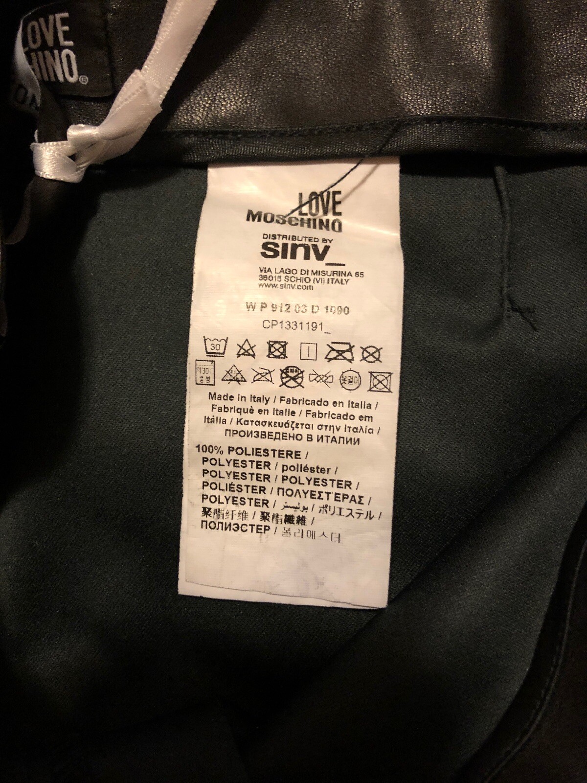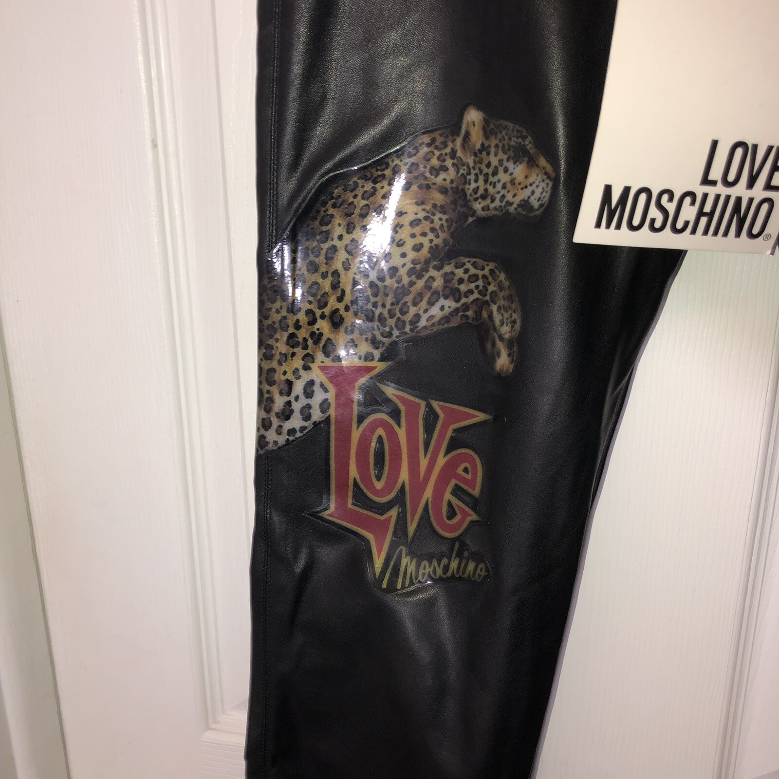 как выглядит NWT LOVE MOSCHINO Black Faux Leather Graphic Print Cropped Pants Sz 8 Italy фото