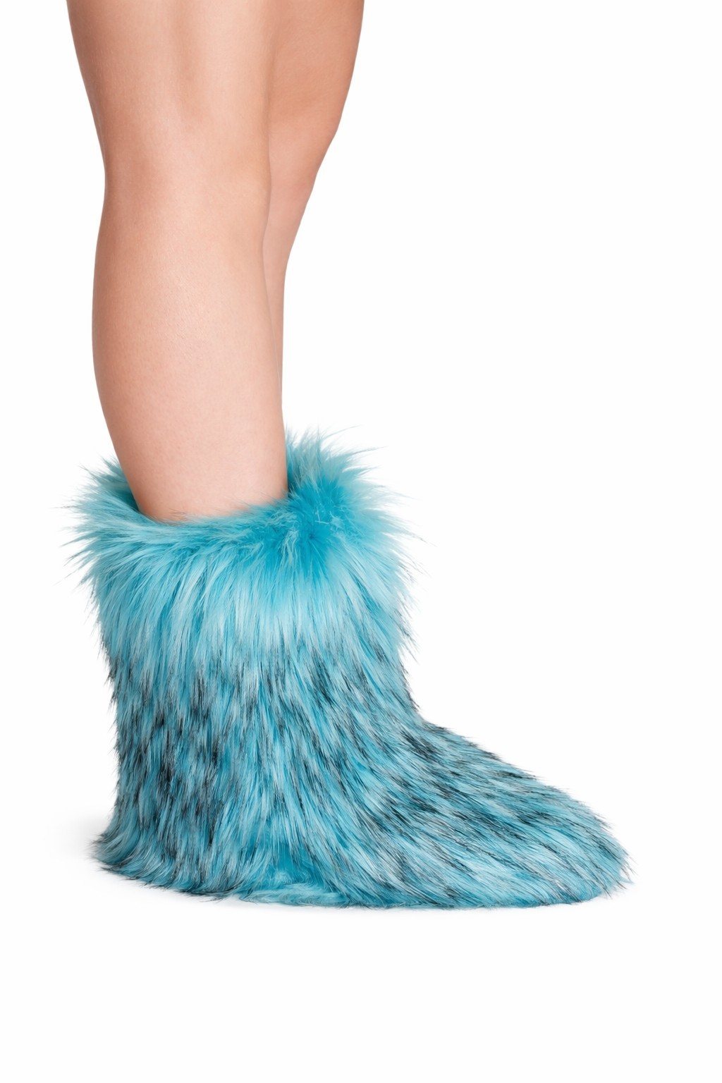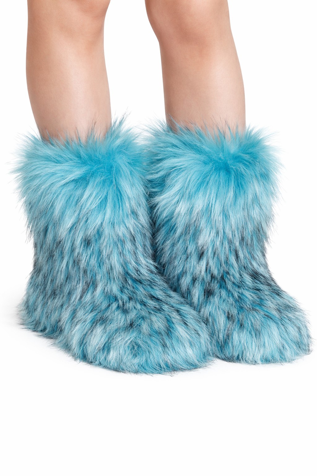 Indoor Faux Fur Boots Women Fuzzy Fluffy Furry Winter Warm Slippers Blue US 7.5