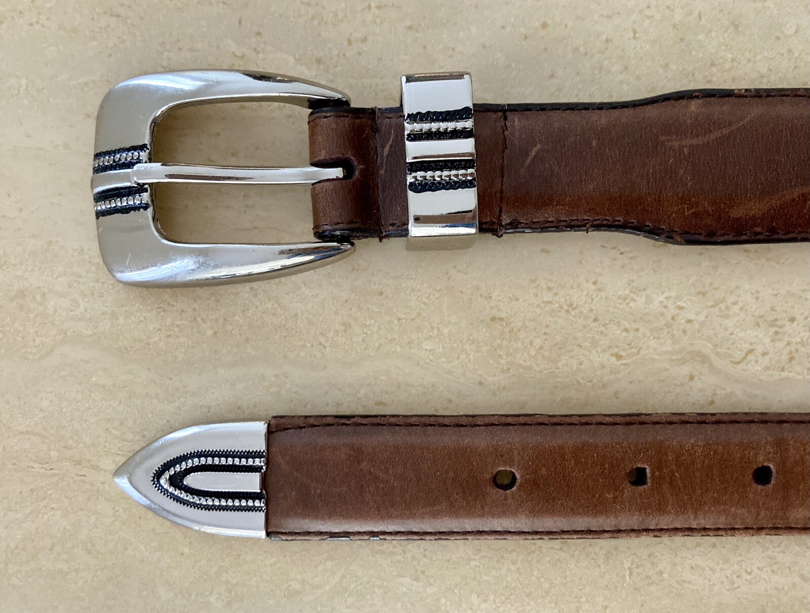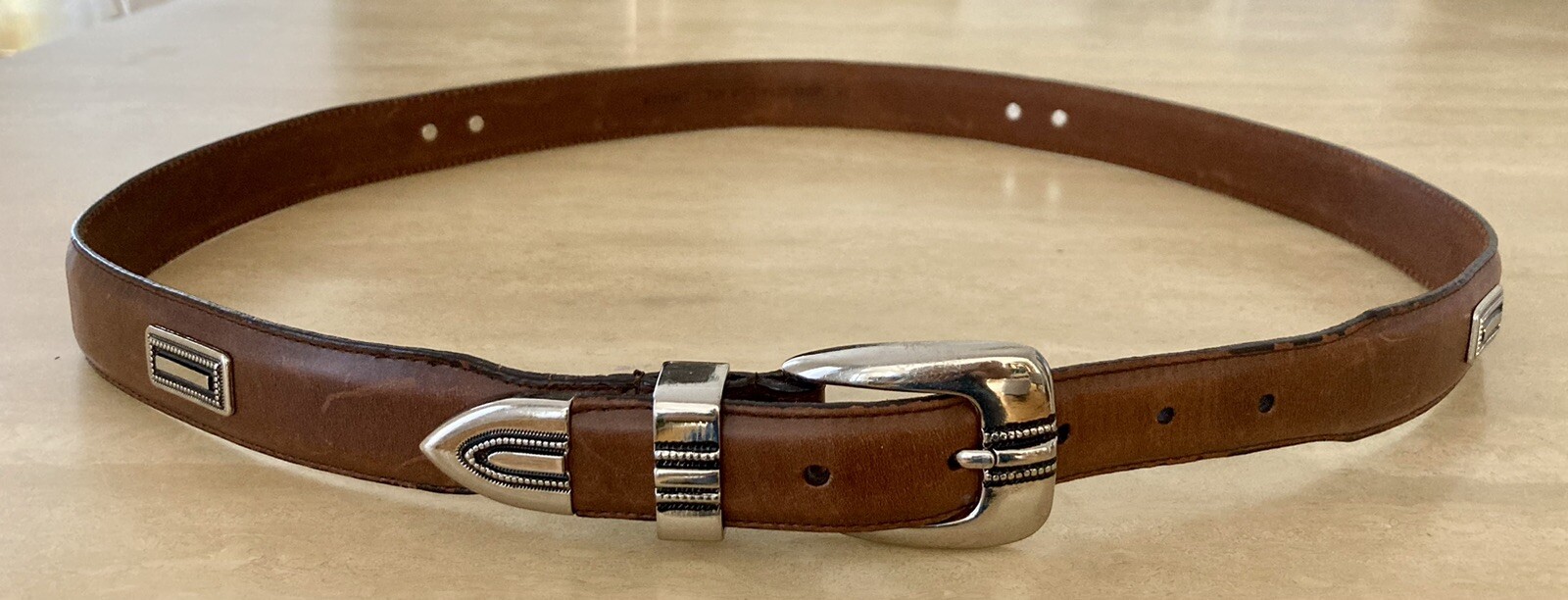 Mens Western Concho Belt Silver Plated Leather Sz 42 - Gorgeous