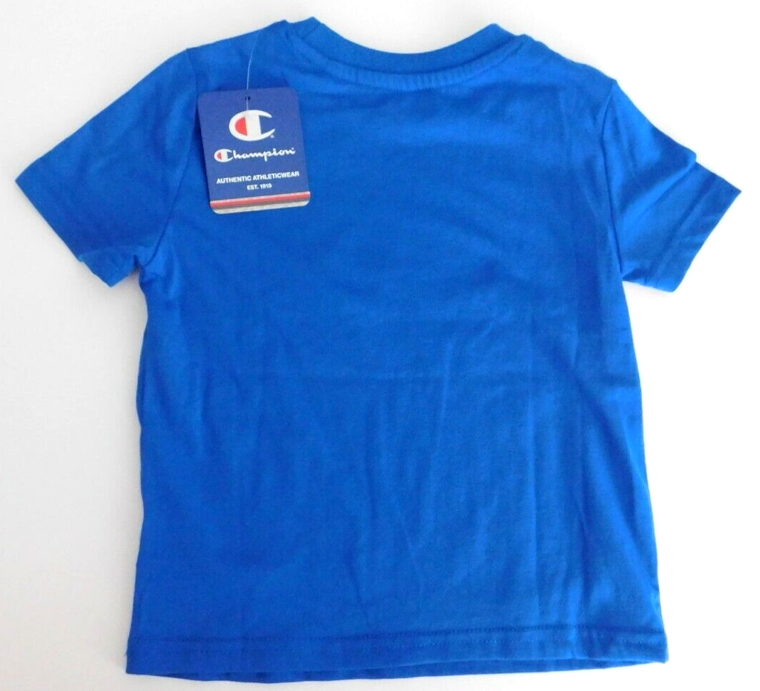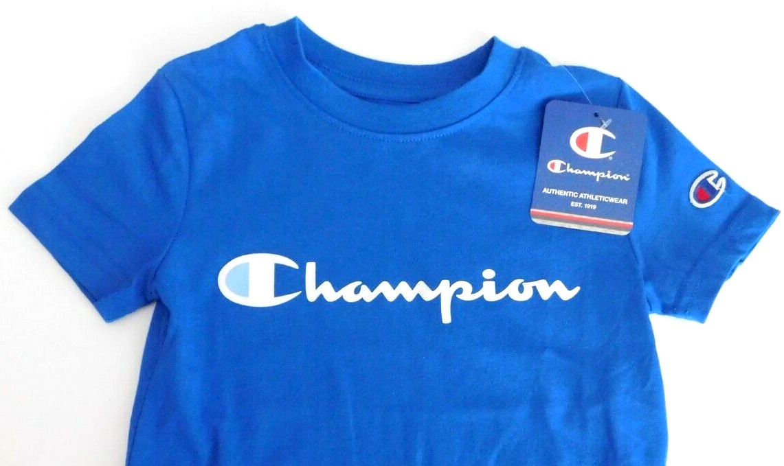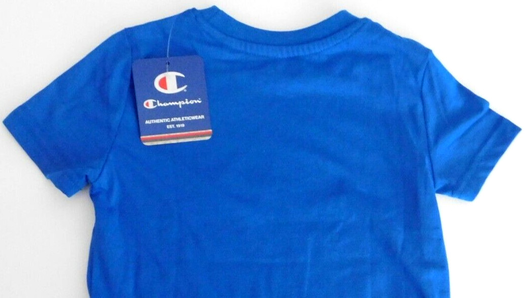 как выглядит Champion Boys T-Shirt Blue White Size 4 Cotton Polyester Logo Crew Neck NEW фото