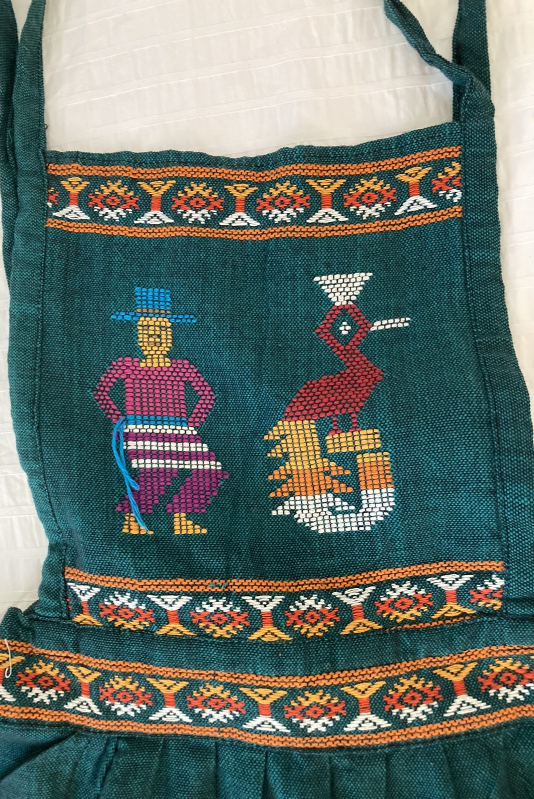 VTG Guatemala Boho/Tuscan Colors Embroidered Bib Apron Color Teal One Size