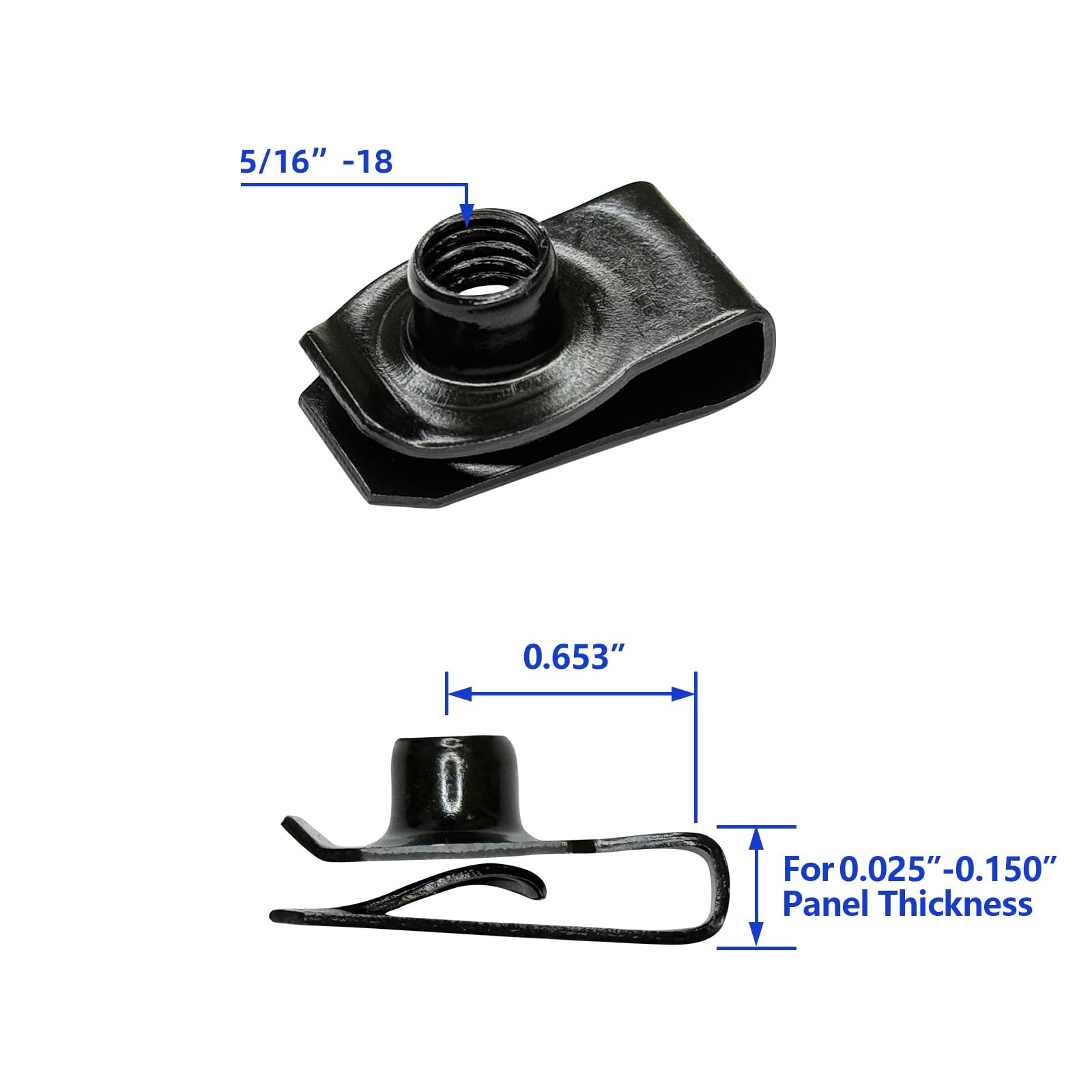 5/16-18 U Clip On Nut, Black Extruded U Nuts Clip Carbon Steel, 15 Pcs U Style