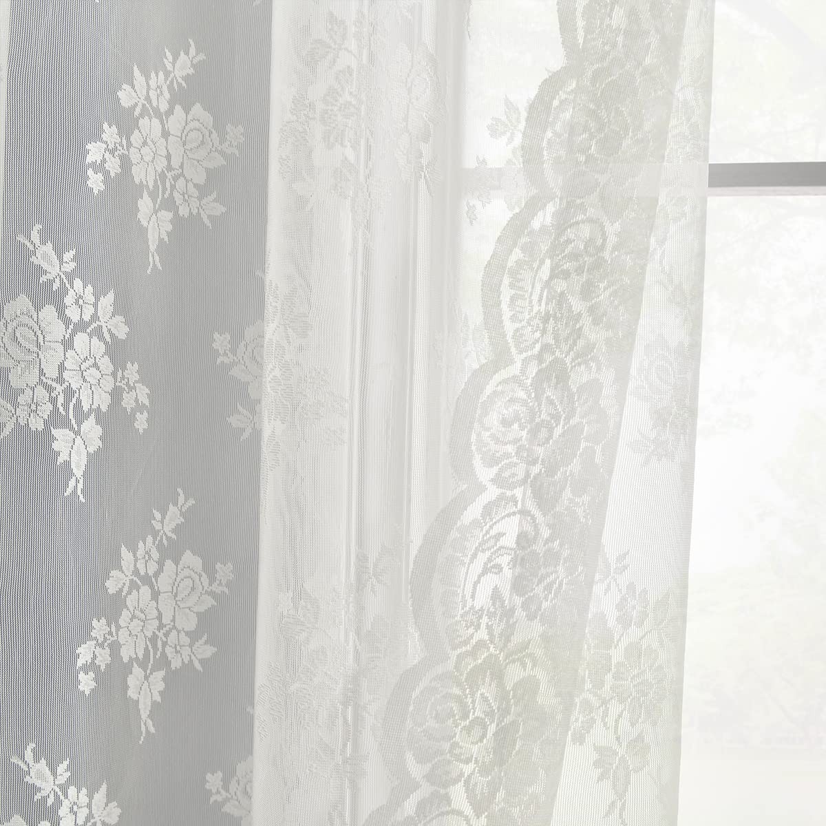 Lace Curtains, 84 Inch Length, 2 Panels Set, Country Floral Scalloped Edge Vi...