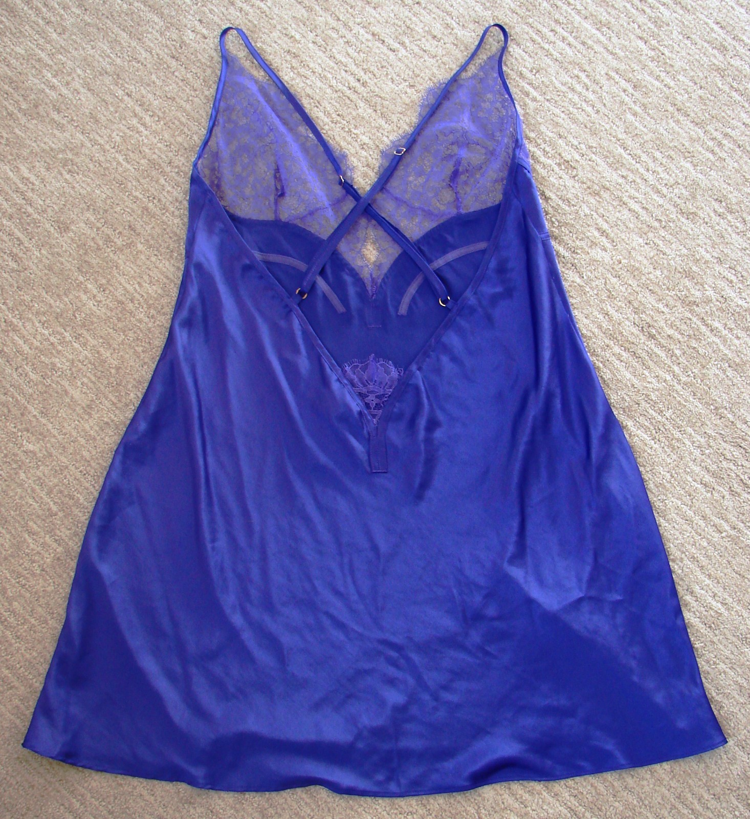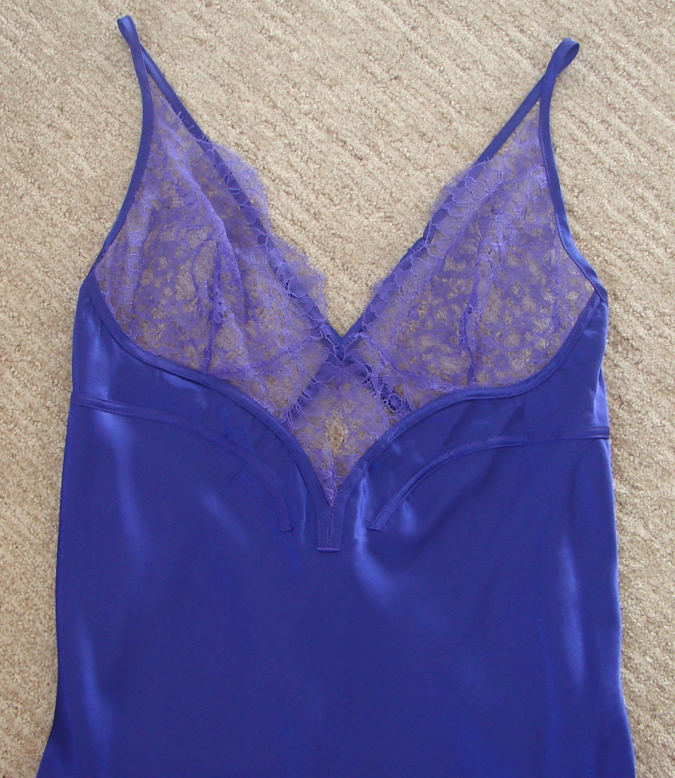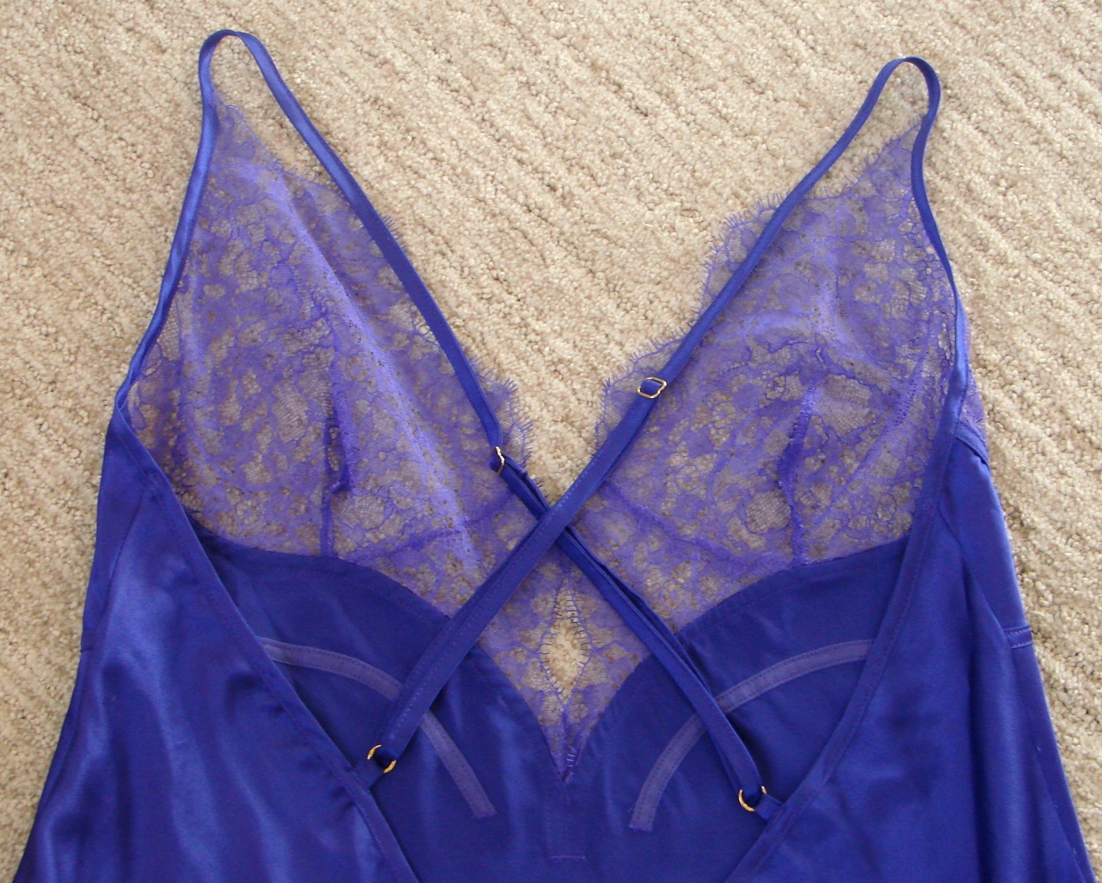 как выглядит Royal Purple Satin VICTORIAS SECRET Nightgown Slip Criss Cross Straps Lace L фото