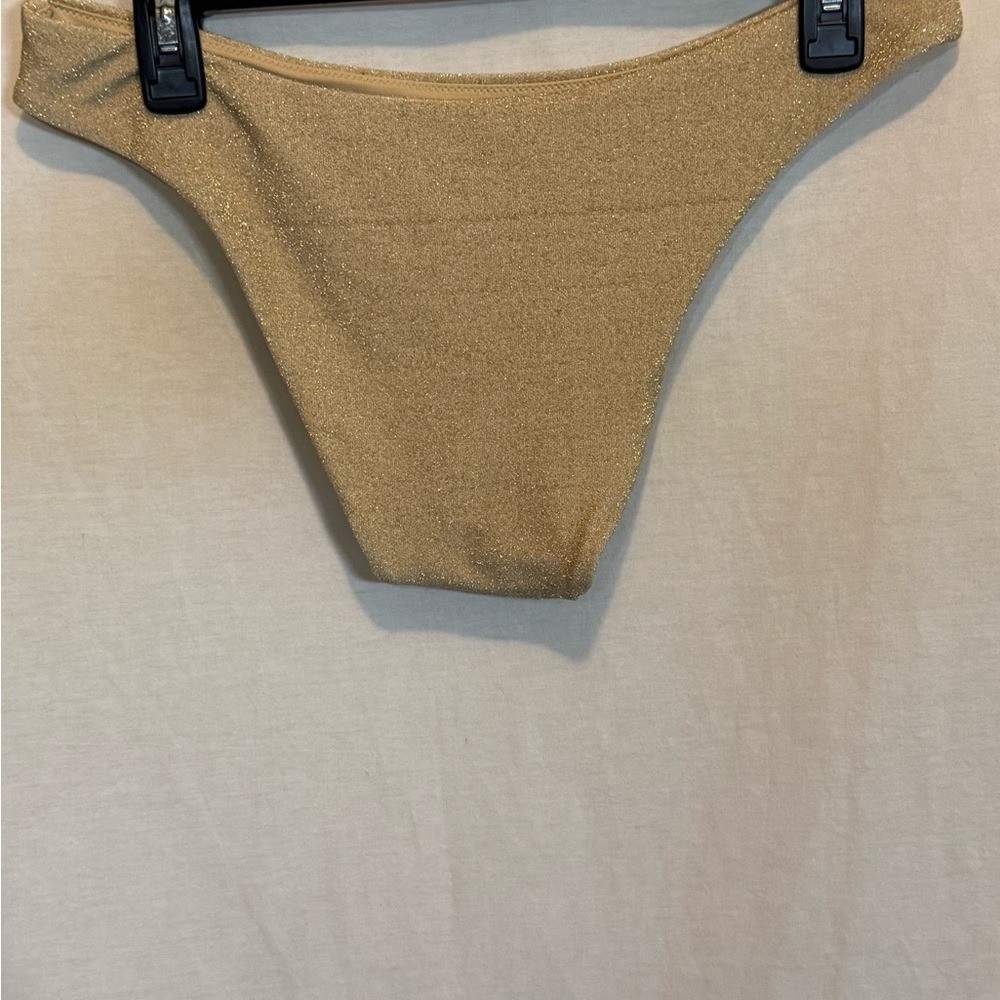 как выглядит AA-387 Aerie NWT Cheeky Gold Metallic Summer Swim Bikini Bottoms Size L фото