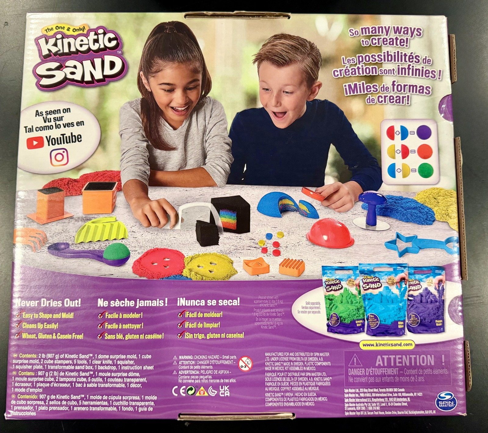 Spin Master 6061653 Kinetic Sand Sandisfactory Set with 2 lbs of Color and Black