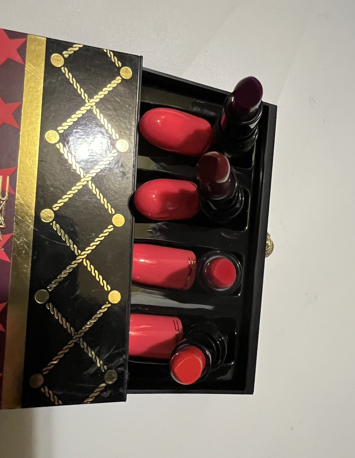 MAC Nutcracker Sweet RED Lipstick Kit 4p Gift Set Diva Rebel MAC Red Lady Danger