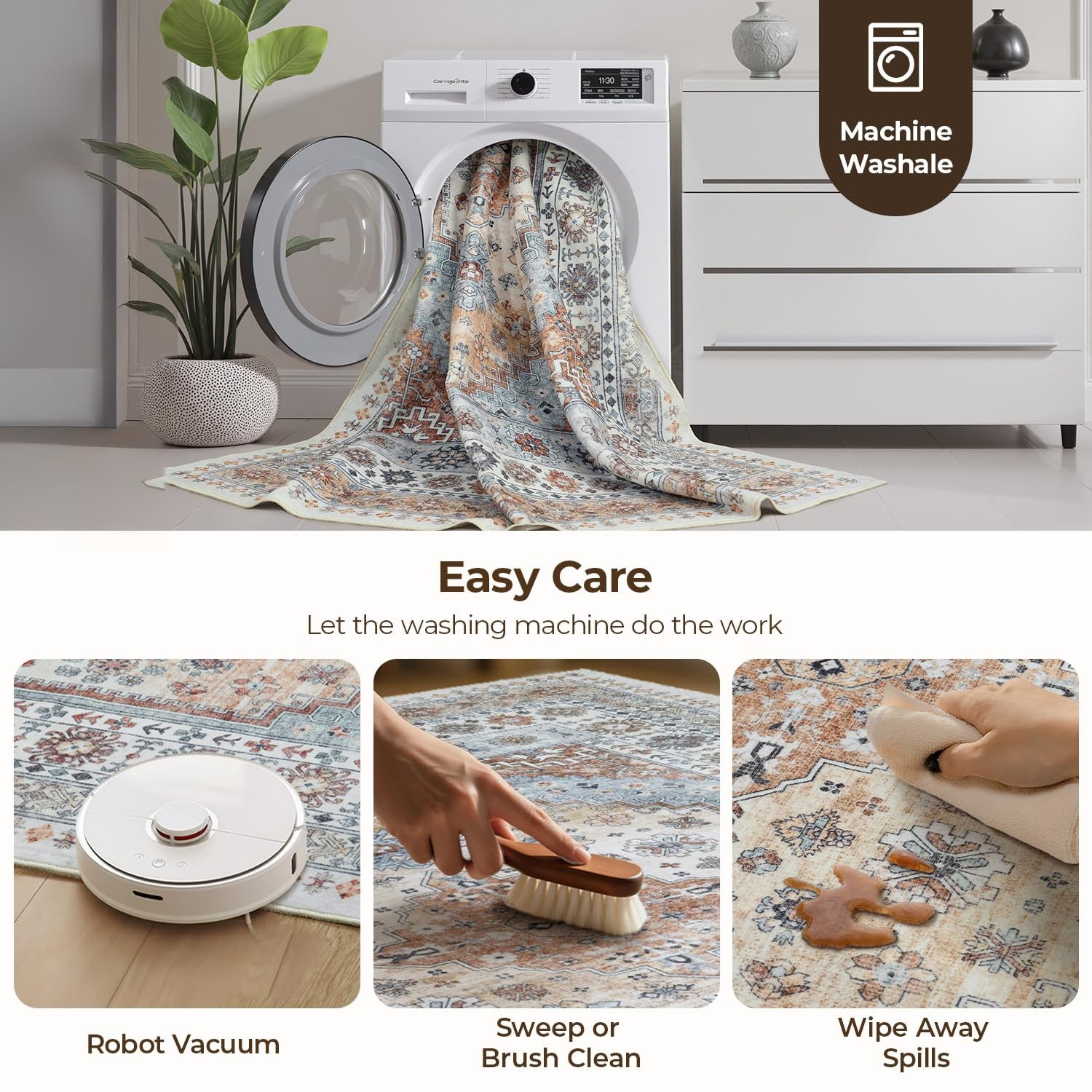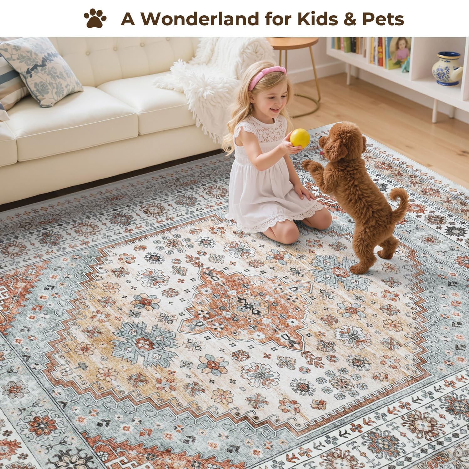 5x7 Area Rugs, Washable Living Room Rug, Vintage Boho Carpet, Non Slip Stai...