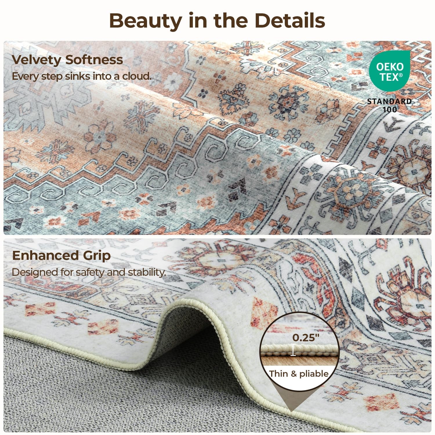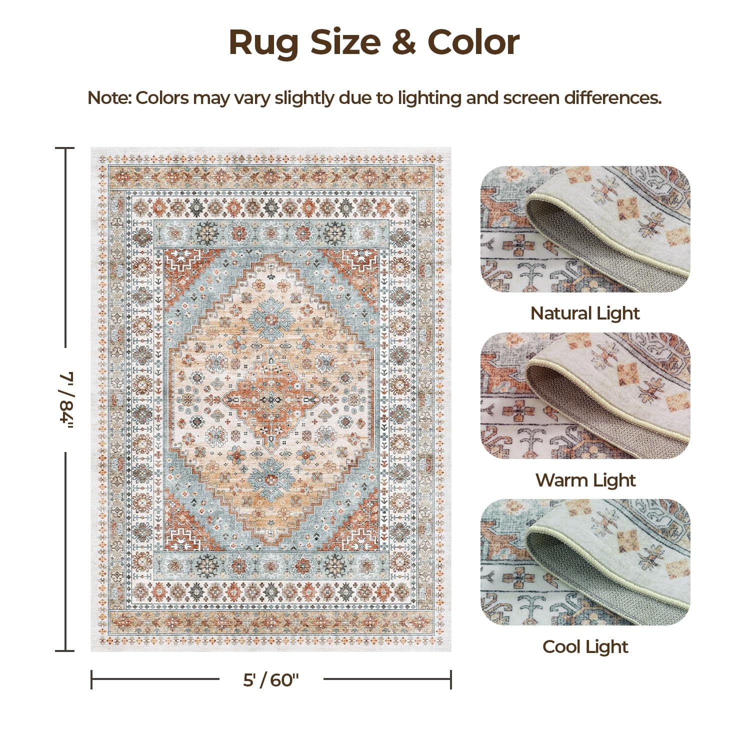 как выглядит 5x7 Area Rugs, Washable Living Room Rug, Vintage Boho Carpet, Non Slip Stai... фото
