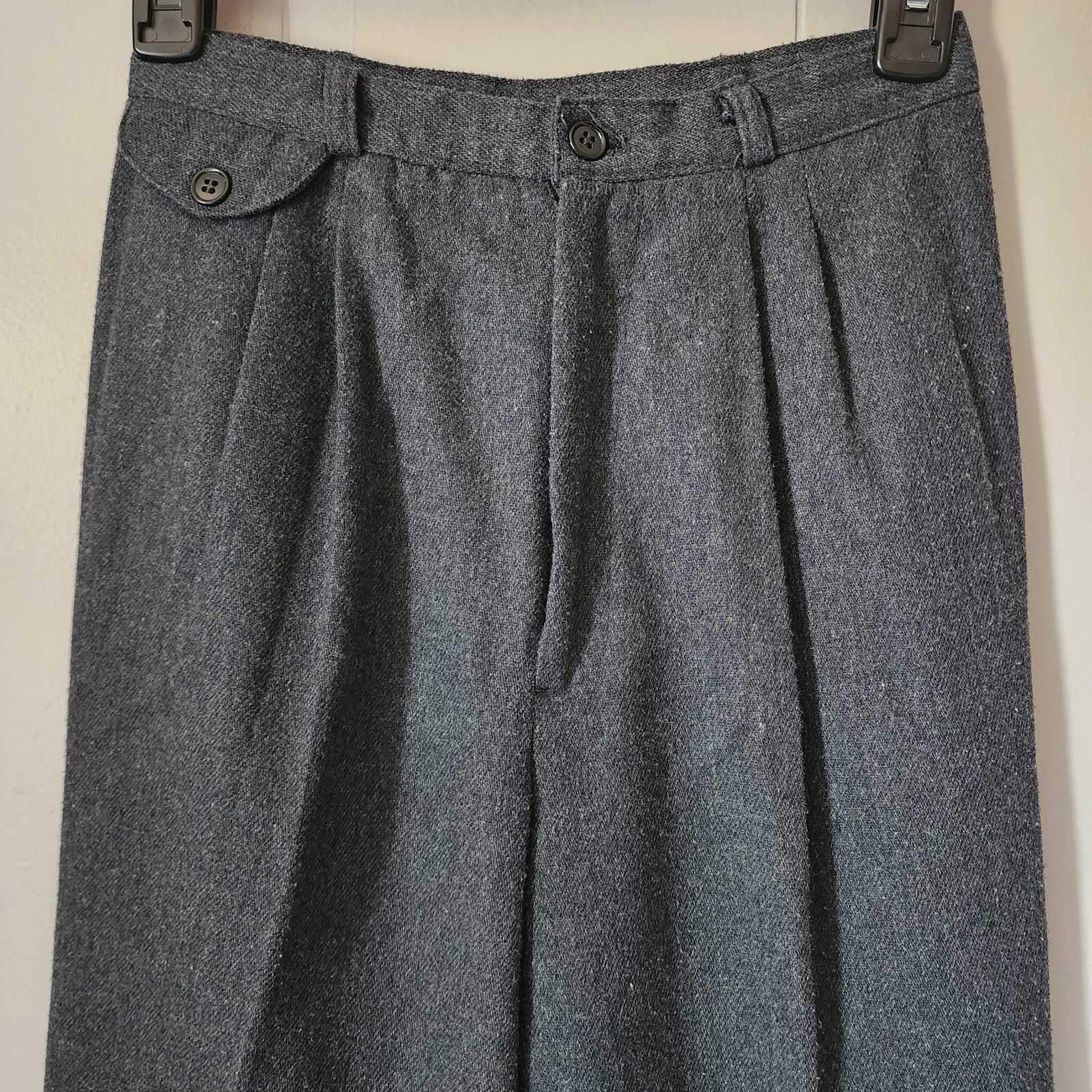 как выглядит Vintage 70s Chequers 7/8 Union Made Wool Gray Pleated Wide Leg Trousers High фото