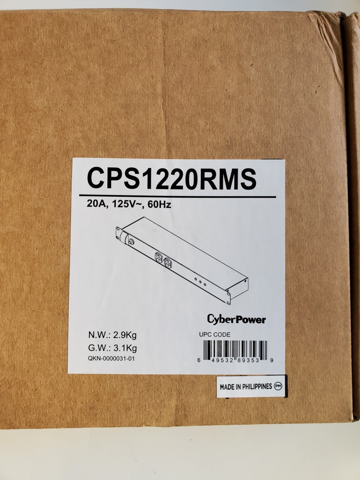 Cyber Power CPS1220RM Basic PDU, 100-125V/20A, 12 Outlets, 15ft Power Cord