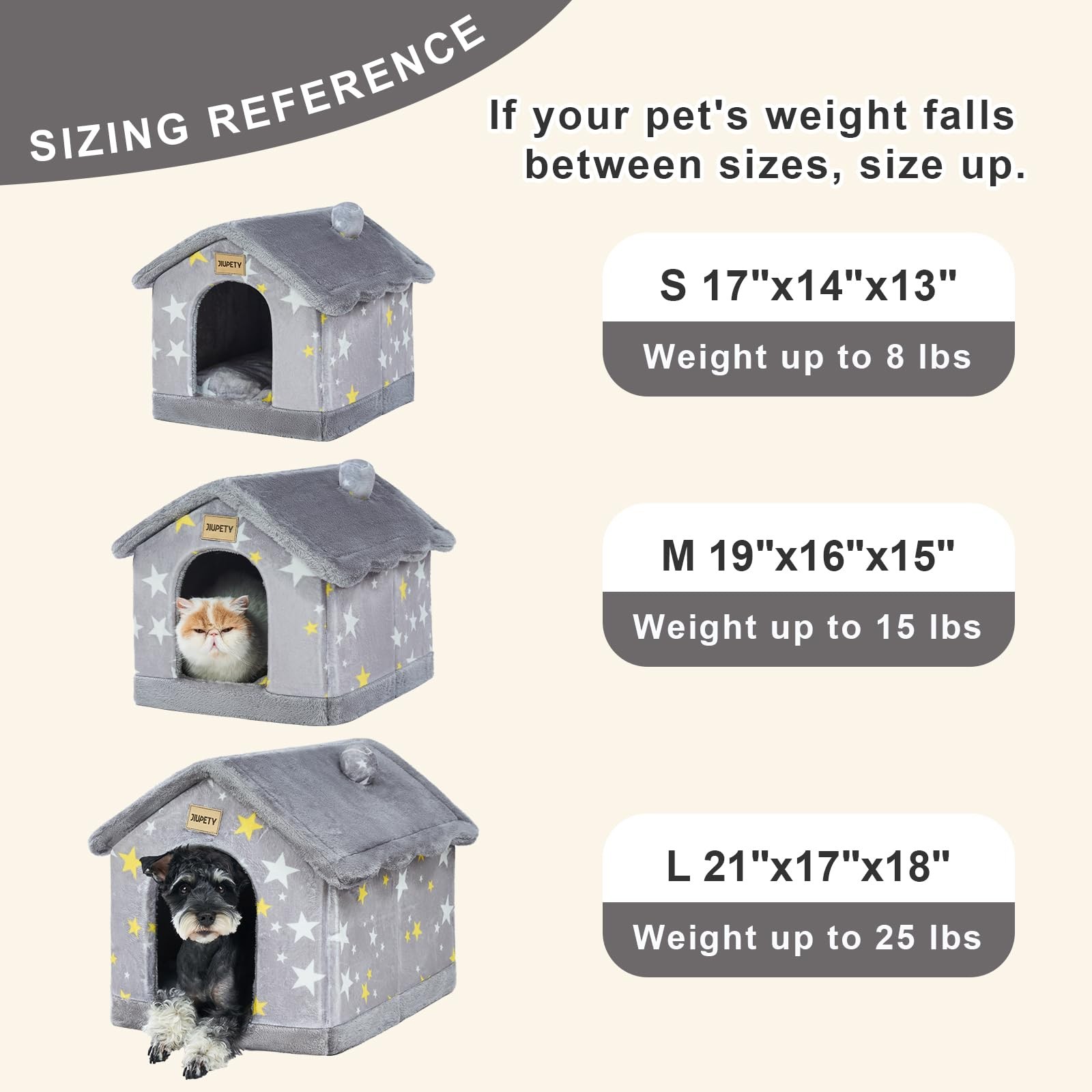 Cute Indoor Dog Houses, Dog Bed with Cover Cave, M Size Up to 15 Lbs Cat and