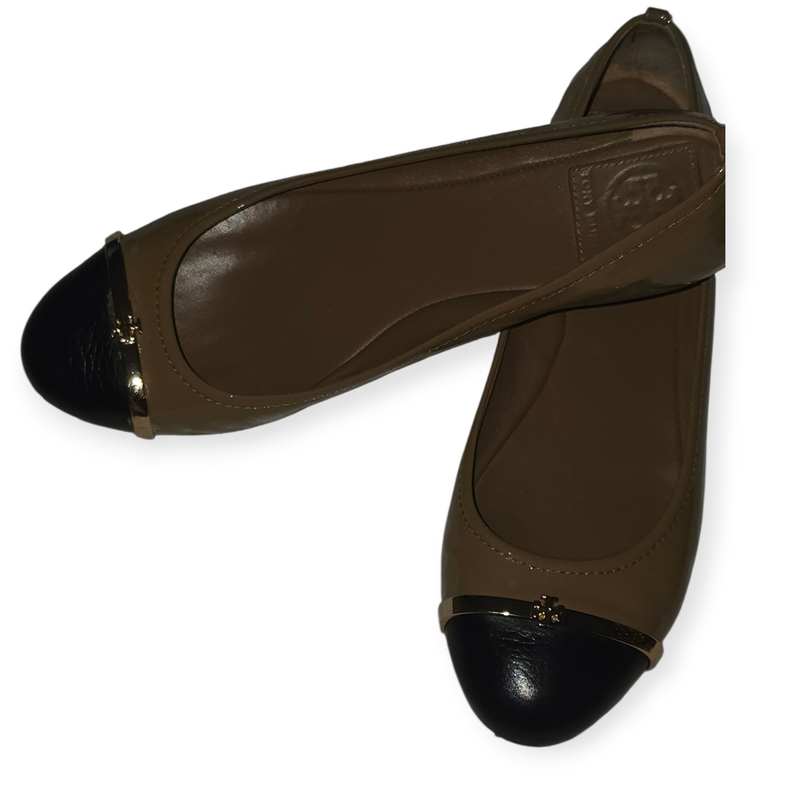 Women's slip on leather flats Tory Burch gold finish size 8