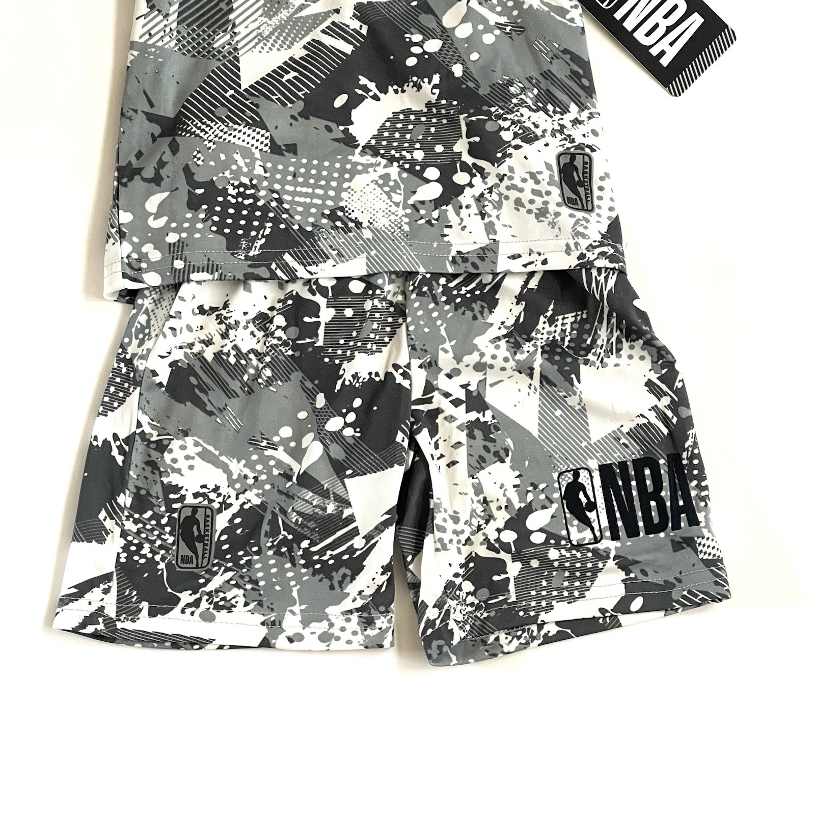 как выглядит NBA Kids Sport Set Boys TODDLERS SIZE 2T Gray Splash Camo Shirt Shorts Logo NWT фото