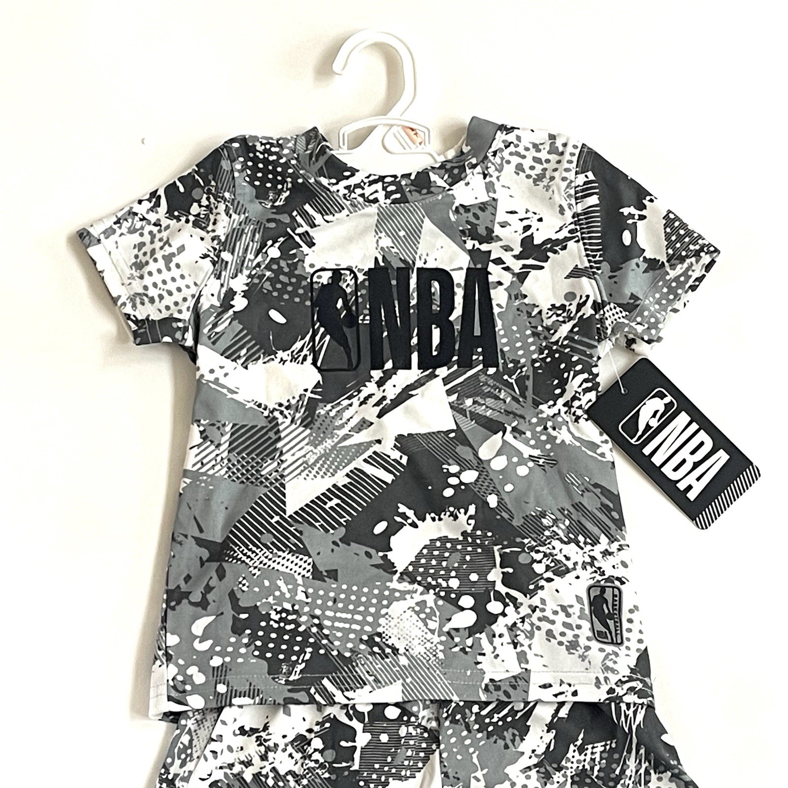 NBA Kids Sport Set Boys TODDLERS SIZE 2T Gray Splash Camo Shirt Shorts Logo NWT