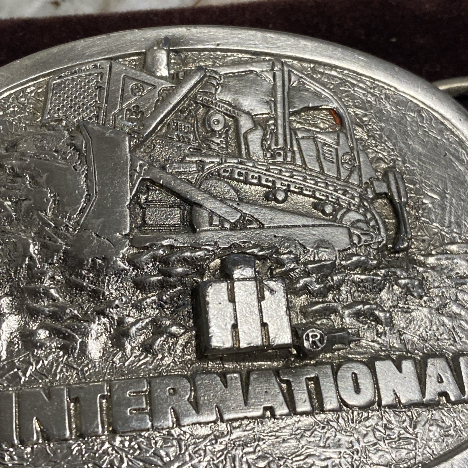 Vintage International Harvester Pewter Spec Cast Belt Buckle Tractor Bulldozer