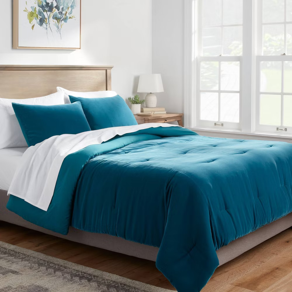 Full/Queen Lustrous Velvet Comforter Sham Set Dark Teal Blue - Threshold