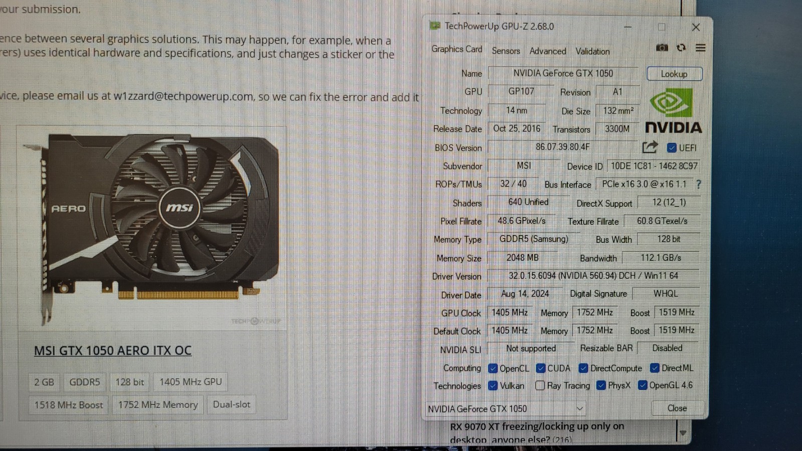 Chipset/GPU Model: NVIDIA GeForce GTX 1050
