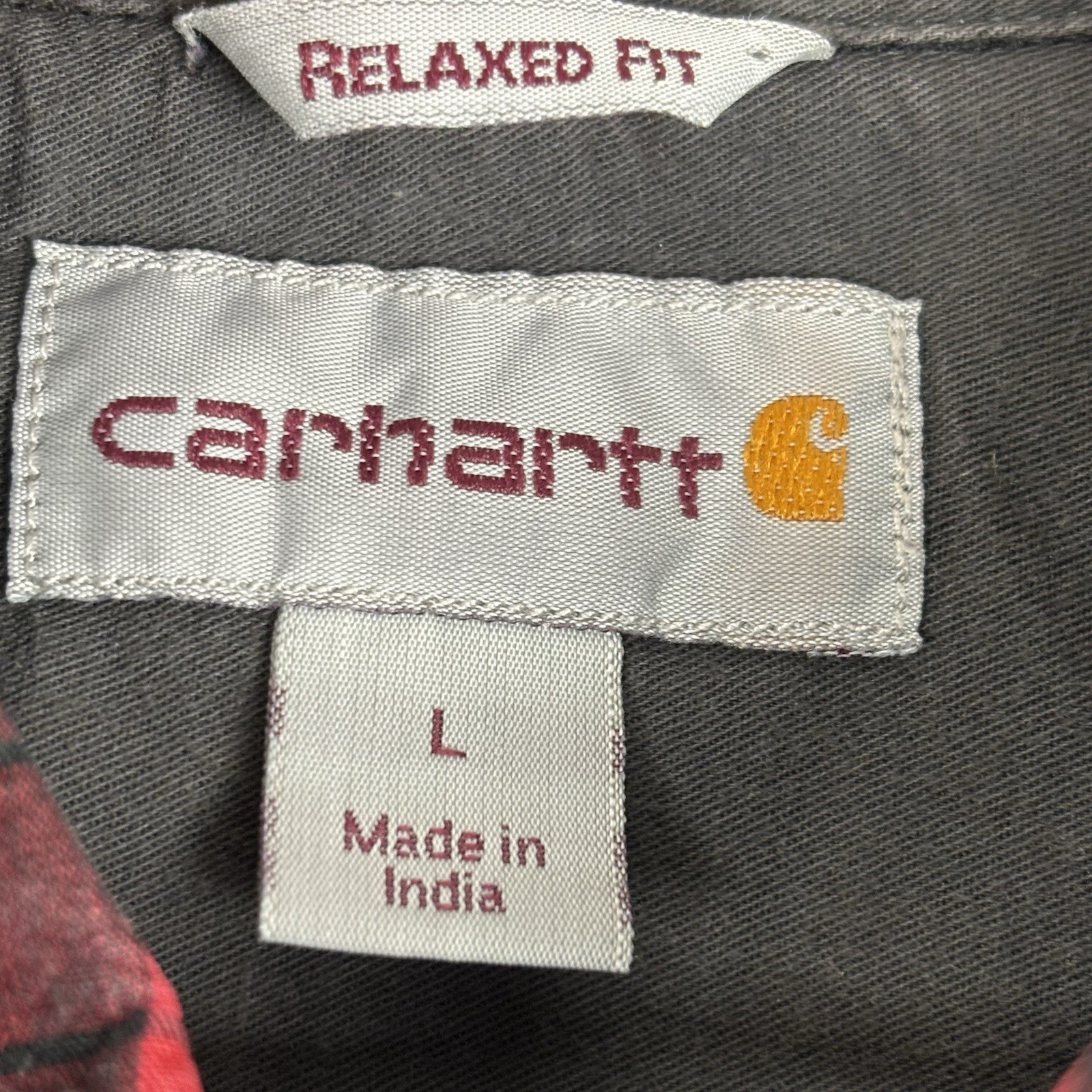Carhartt Shirt Mens Large Red Black Plaid Button Down Relaxed Fit Work Utility