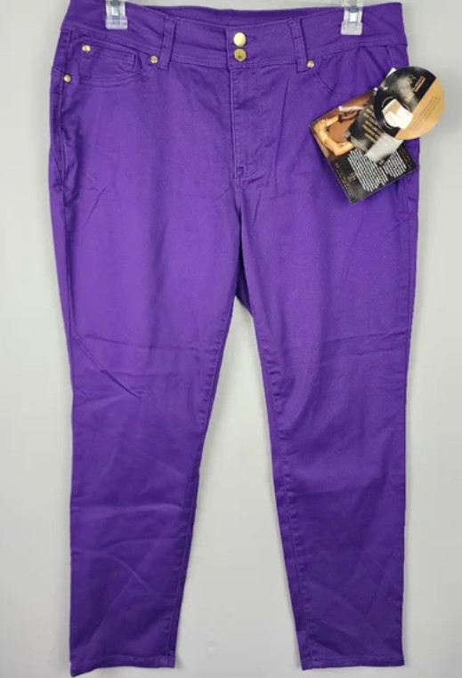 как выглядит IMAN Global Chic Purple Stretch 360 Slim Boot Cut Jean Purple 4 фото