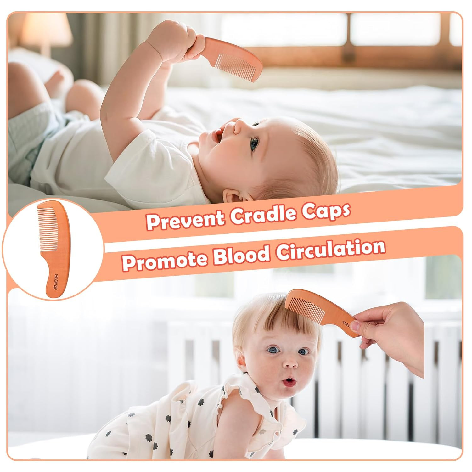Baby Hair Bush and Comb Set,Baby Hair Brush with Soft Goat Bristle and Wood Comb