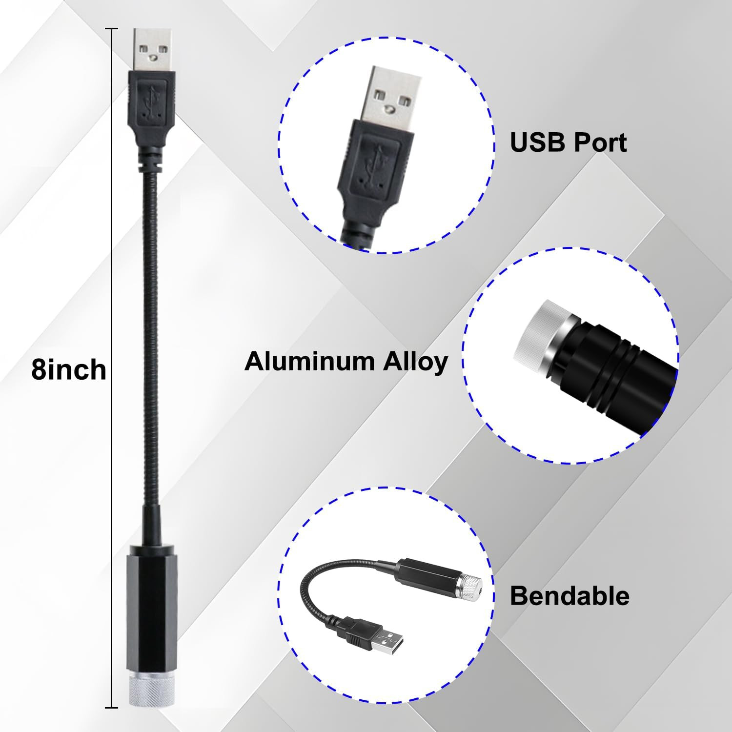 USB Projector Night Light, Portable Adjustable Star Roof Light Car Interior LED