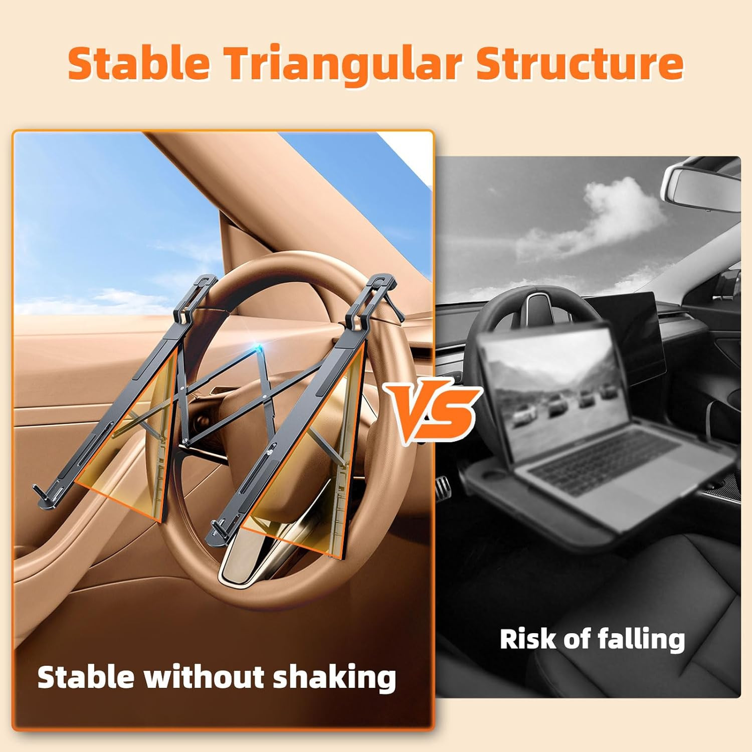 Foldable Car Laptop Holder, Adjustable Car Laptop Mount for Steering Wheel Tray