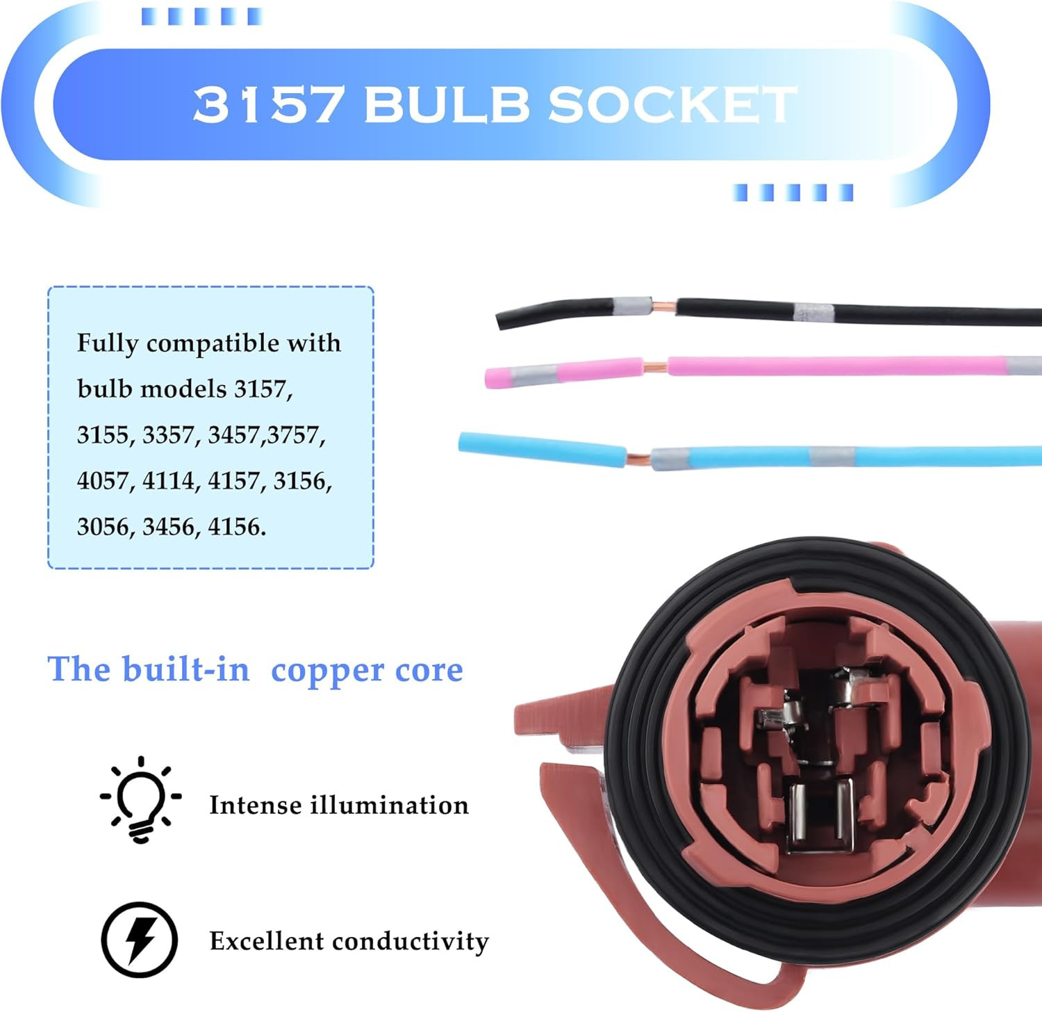 2PCS 3157 Bulb Socket,Turn Signal Socket/Tail Light Sockets/Brake Light Sockets